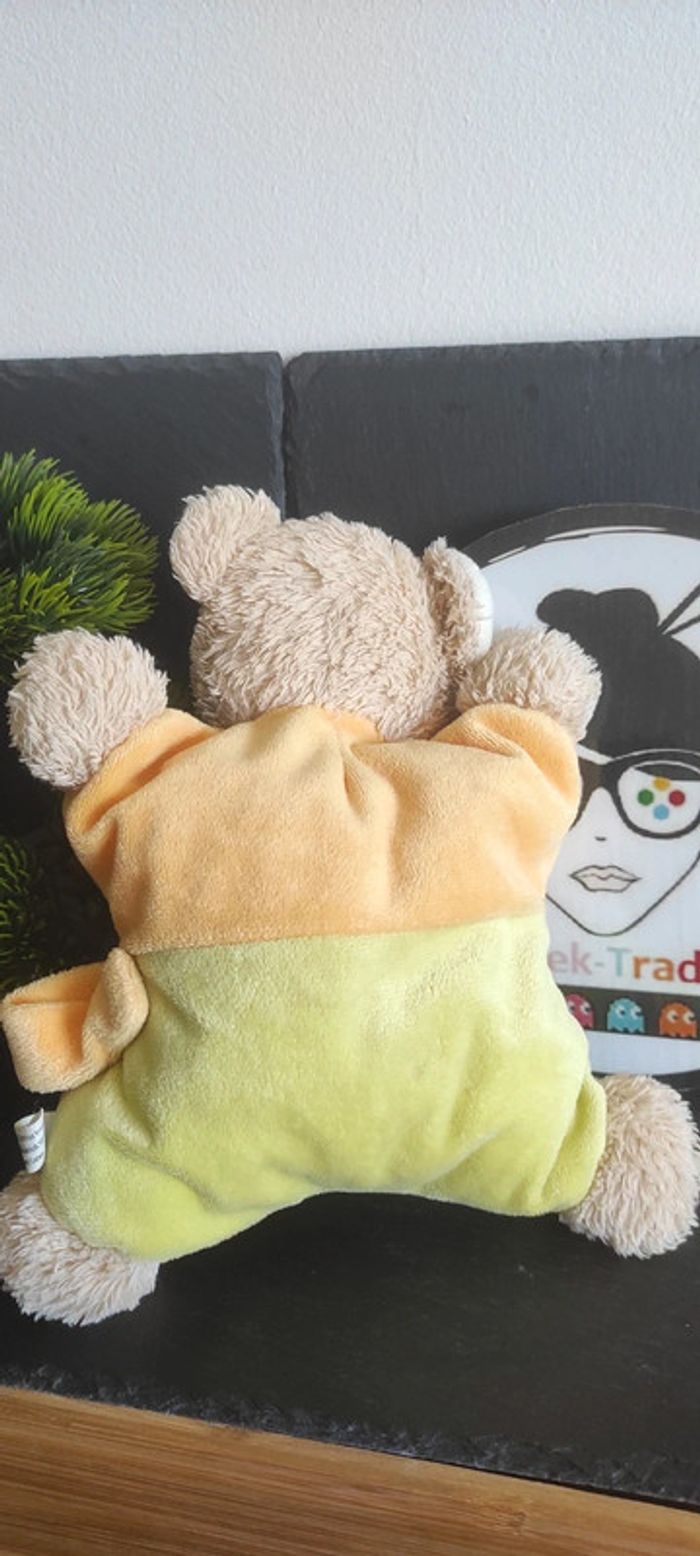 Doudou semi plat coussin Ours orange vert Girafe Tex Baby Carrefour Jaune Marron