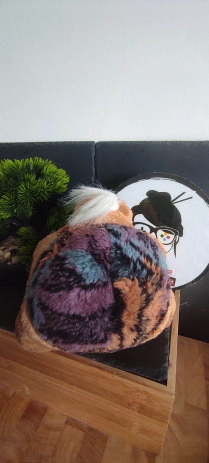 peluche plush tortue turtle ajena ancien vintage marron violet bleu noir cheveux crinière blanc