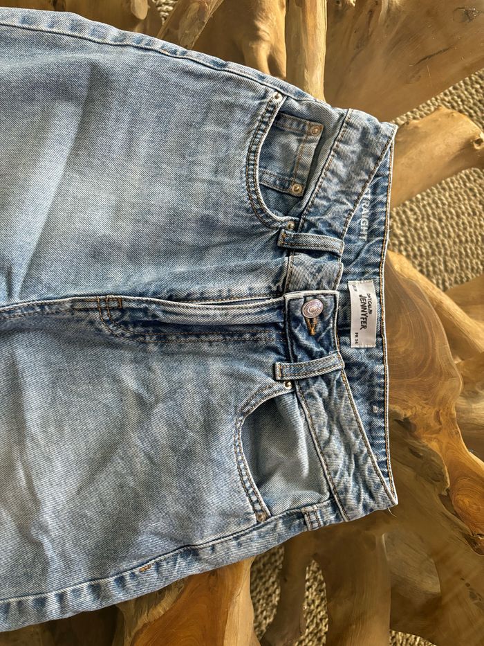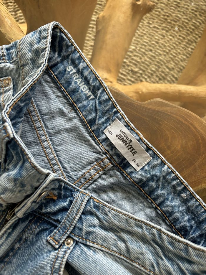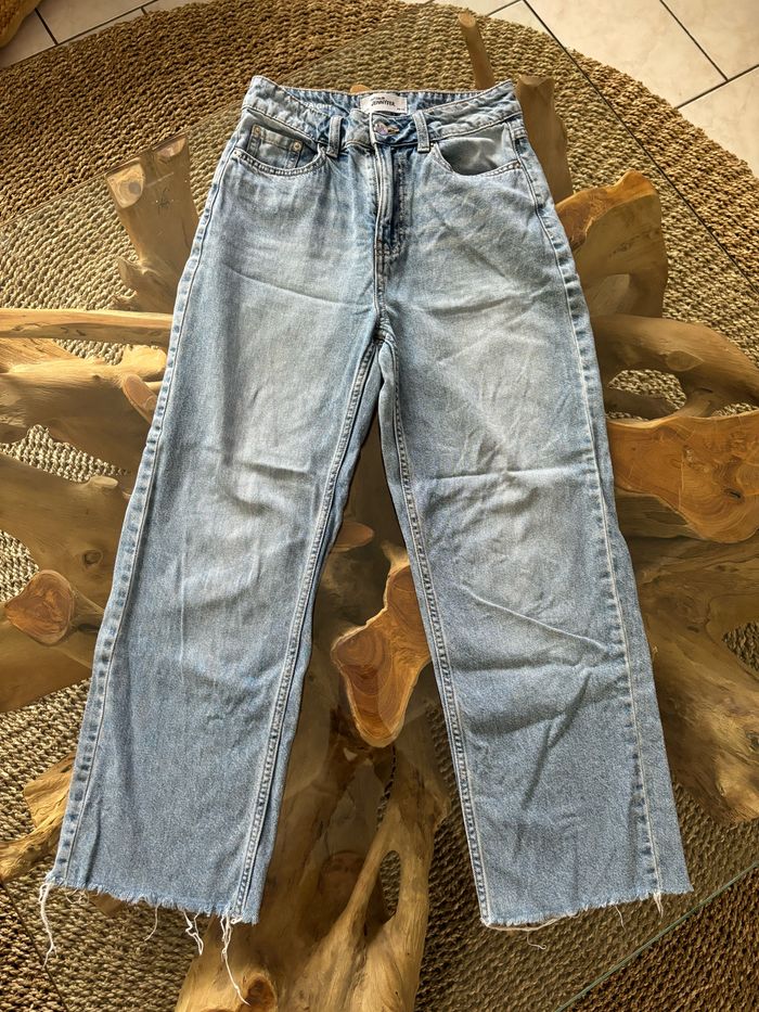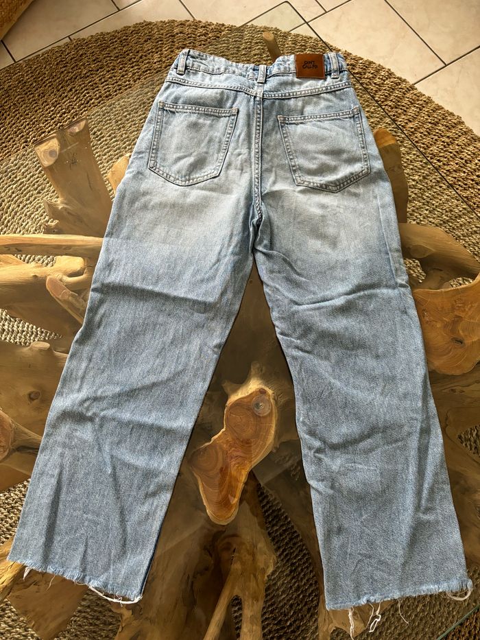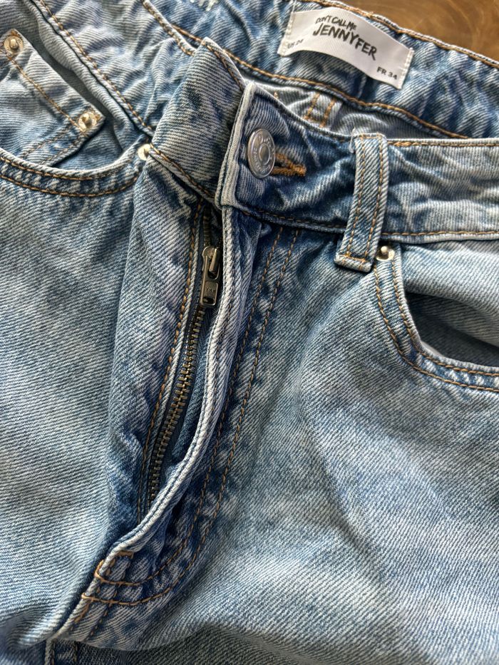 Jean Don't call me Jennyfer Straight Court Effiloché en bas Bleu clair Taille 34 Très bon état