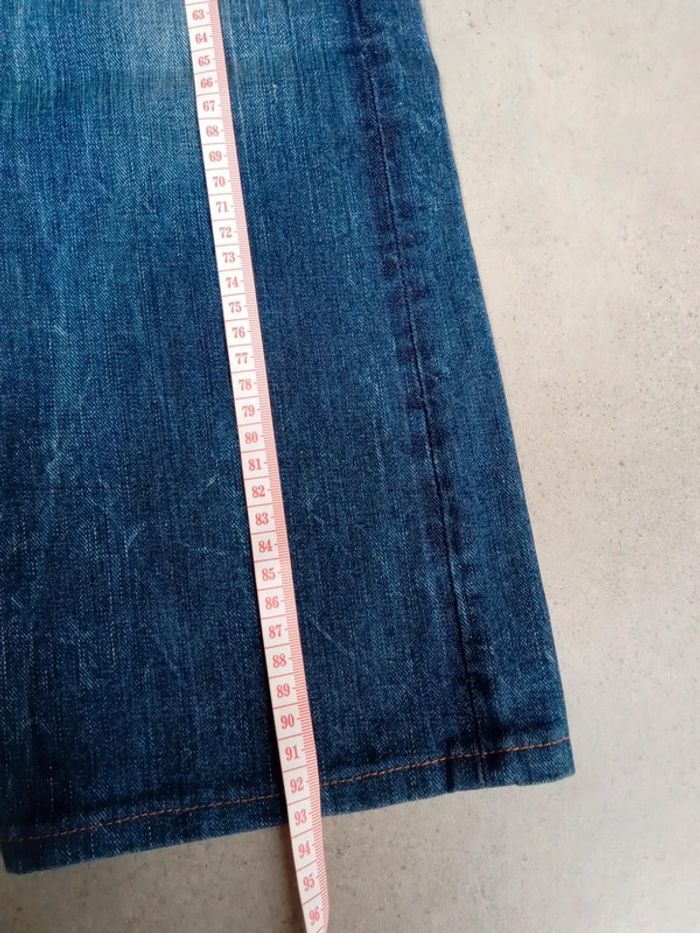 Longueur de jambe 93 cm entre jambe 73 cm largeur du bas de pantalon 20 cm. Jeans fabrication italienne model numéroté. Manque un bouton