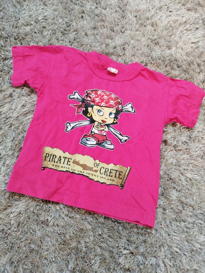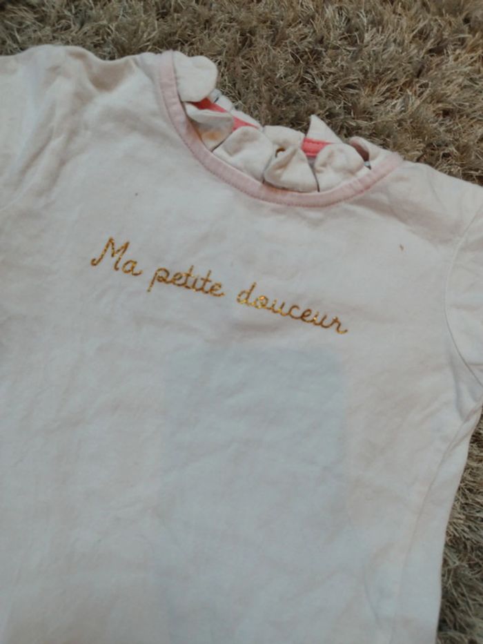 Lot de 4 t-shirt fille 2 ans un débardeur rose uni du pareil au même un t-shirt manches courtes rose avec petite cerise Gémo très amusante un t-shirt blanc ma petite douceur avec colle pâquerette boîte à malice et un t-shirt rose manche courte pirate de crête Bon état juste le blanc à colle pâquerette à une mini tache voir photos Réduction sur les lots activés #urgent #lot #réduction #50# fille #été #automne #hiver #printemps #grosdressing