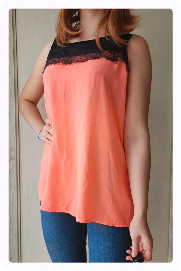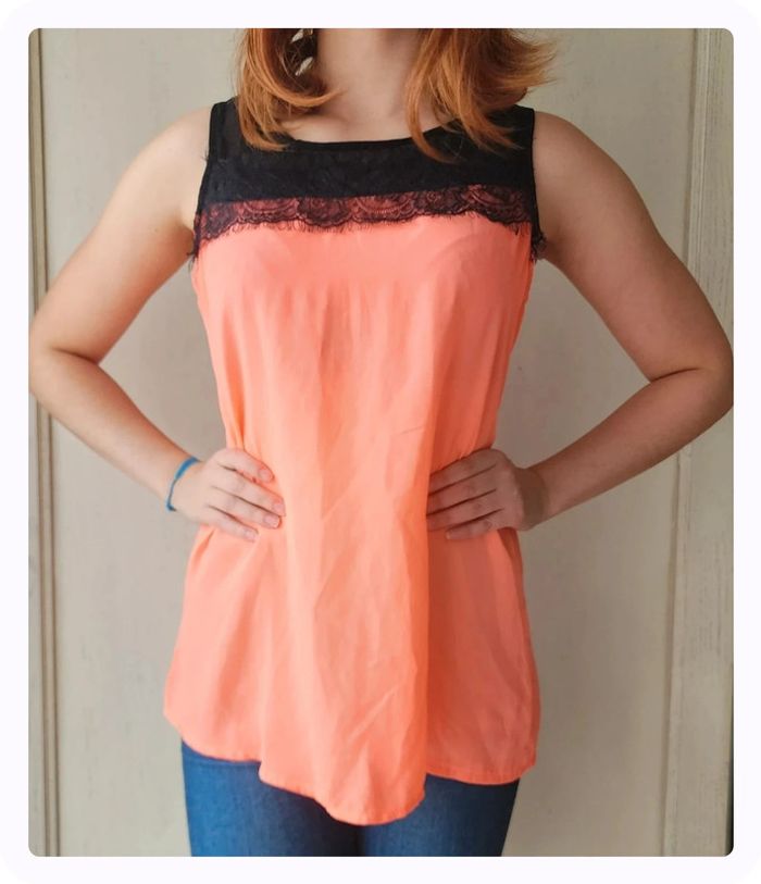 Blouse orange col dentelle avec dos noeuds - photo numéro 1