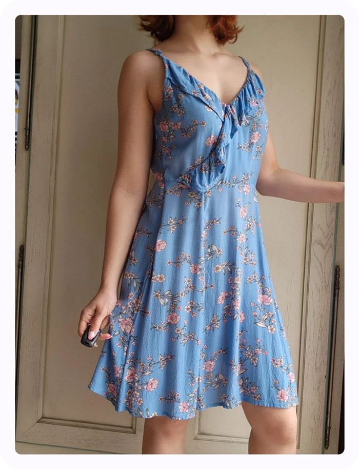 Robe bleue fleurie cache coeur à brides Pimkie - photo numéro 2