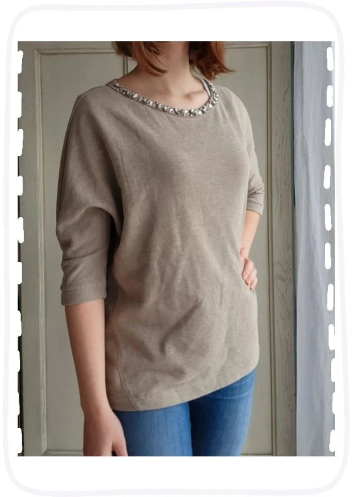 Haut beige col en strass River Island - photo numéro 2