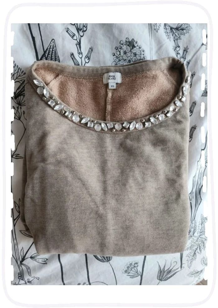 Haut beige col en strass River Island - photo numéro 1