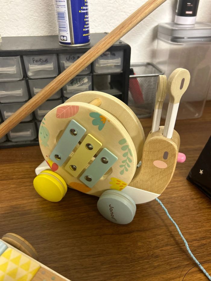 À vendre escargot à tirer de la marque janod, instrument de musique sur un côté acheter 36 €