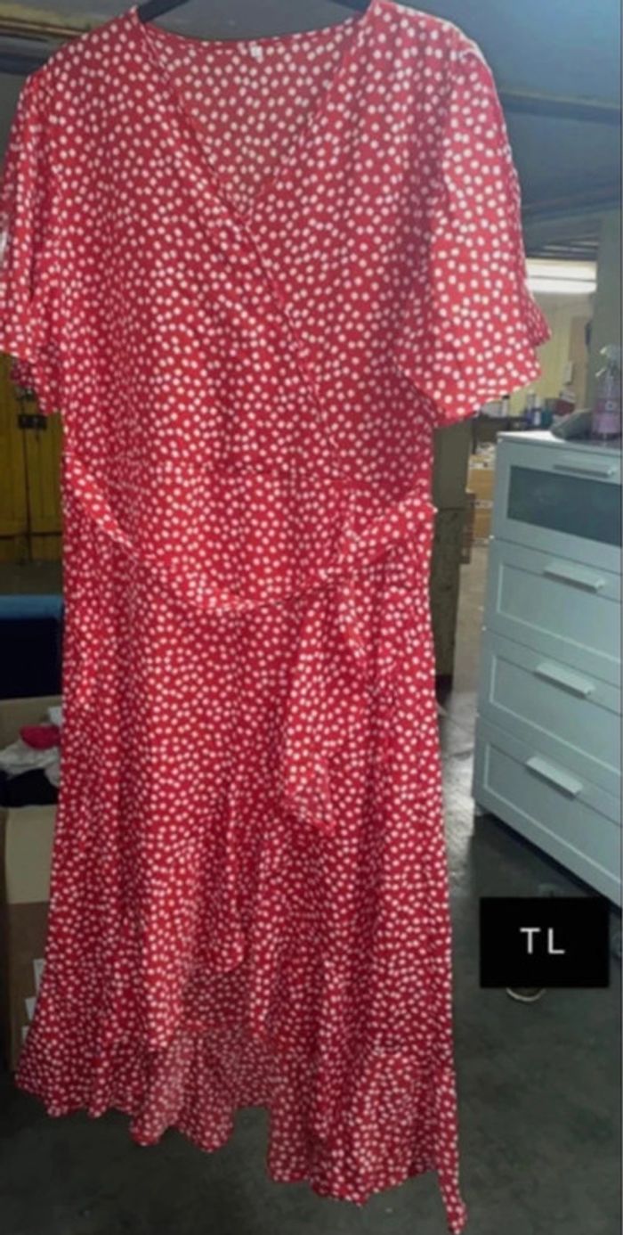 À vendre magnifique, robe rouge en taille L. Imprimer rouge et blanc robe portefeuille croisé mi longue #qbellf #qbel40