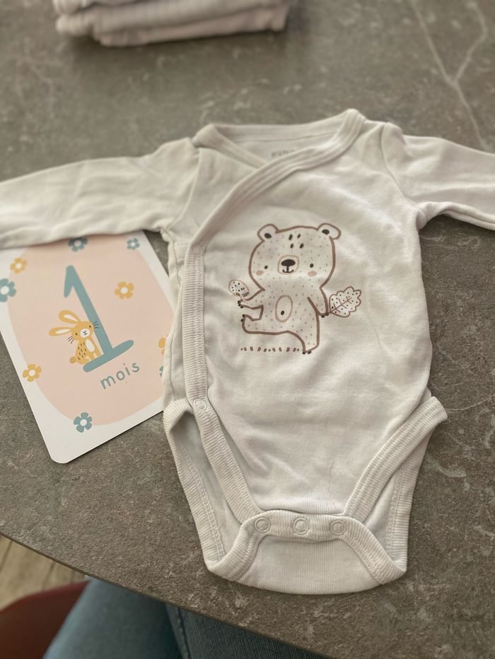 🐯Lot 3 bodies 🐯 1 mois mixte 🐯 Comme neuf / sans taches 🐯 Envoie par Mondial Relais tous les jeudi 🐯 N’hésitez pas à regarder tous les dressing et à faire vos lot , des réductions seront faite !