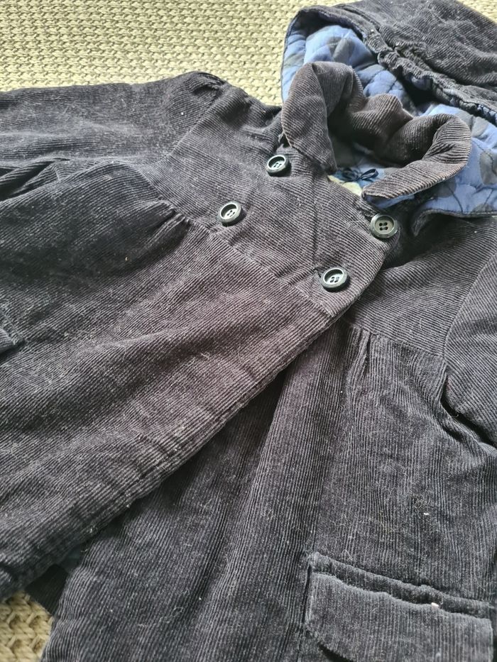 Manteau hiver velour bleu marine - 12/18 mois - photo numéro 2
