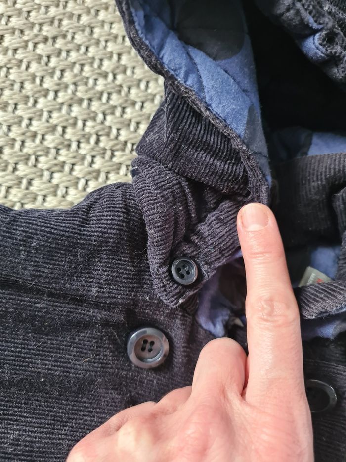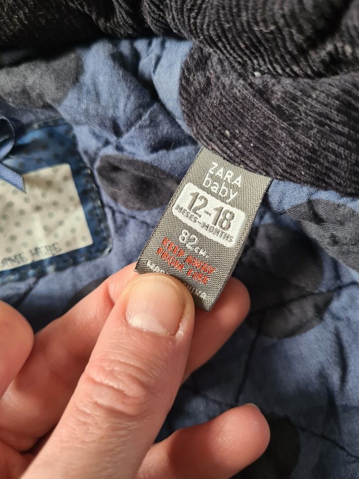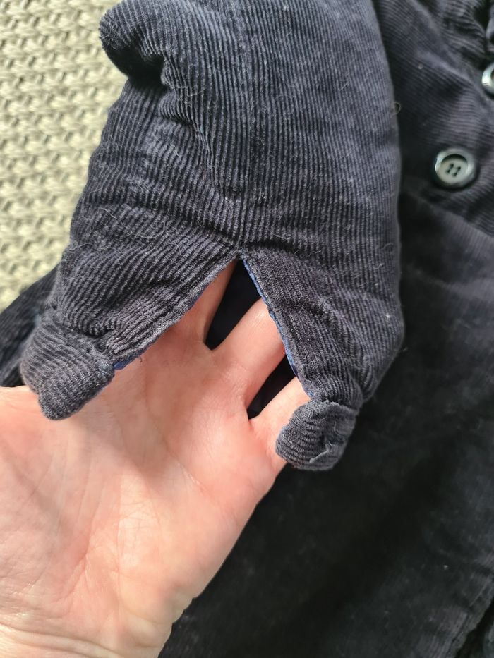 Manteau d'hiver en velours épais bleu marine. Avec capuche amovible. Boutons à enfiler. Manque un bouton sur une manche. Le reste est en parfait état. Taille 12/18 mois - marque zara. Envoi Rapide et Soigné J'applique une réduction si vous prenez plusieurs articles de mon dressing