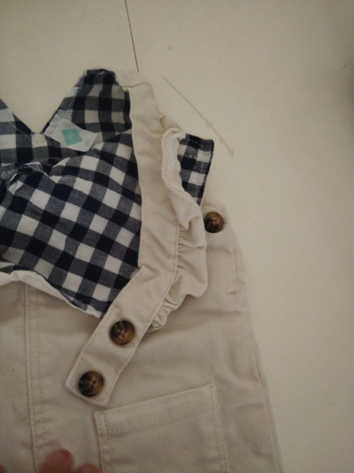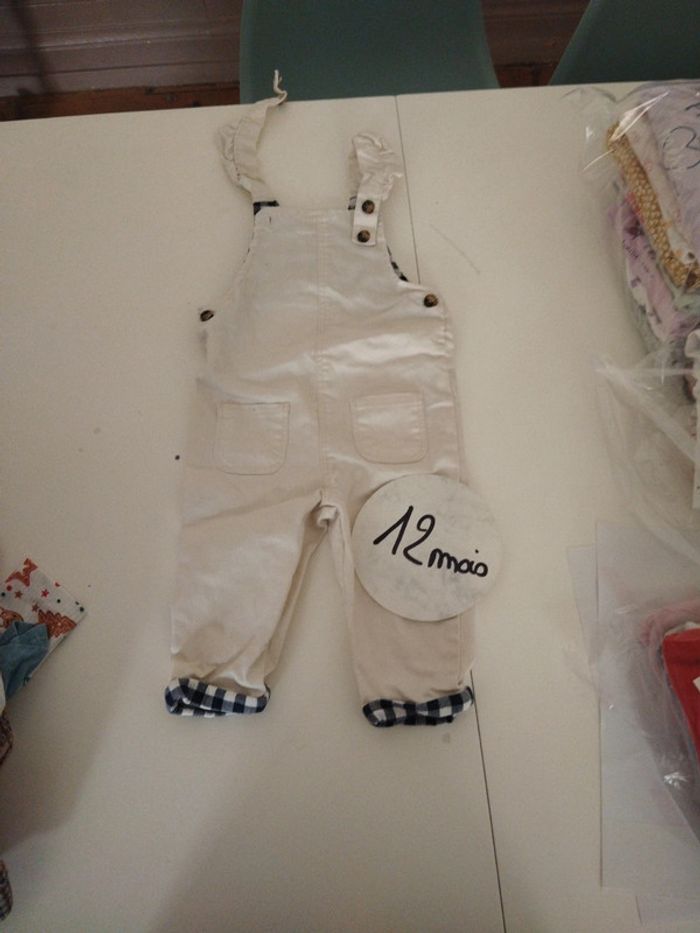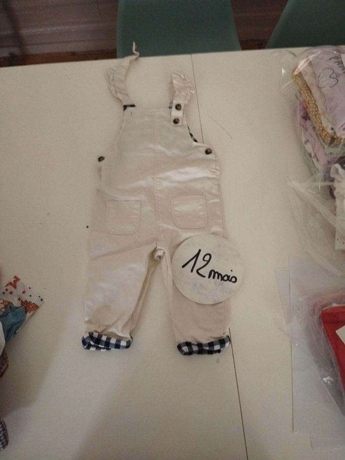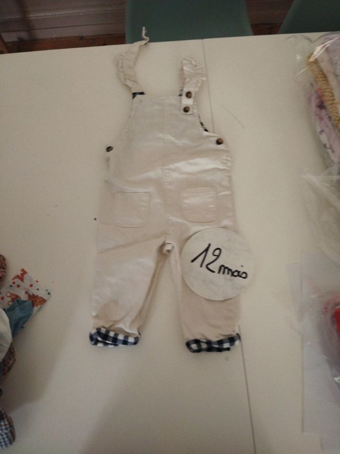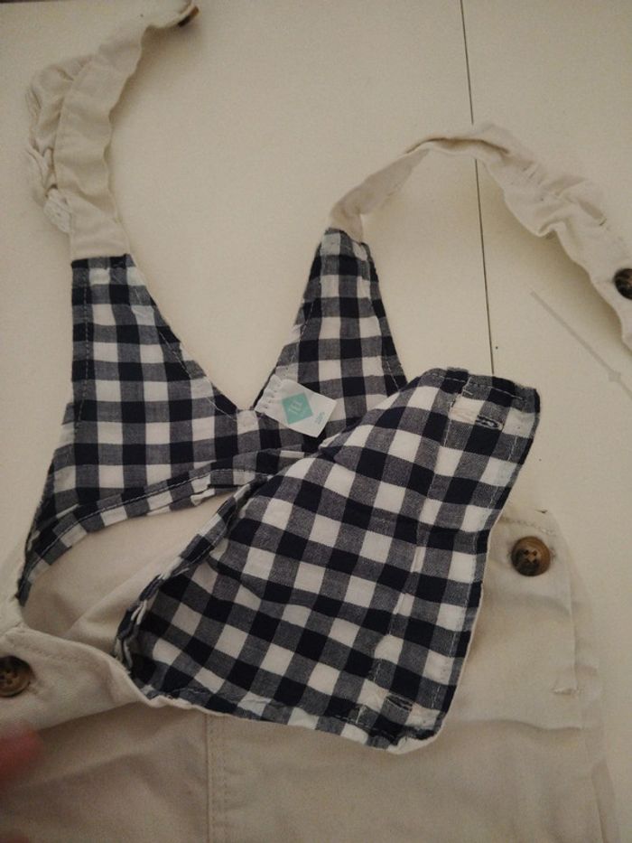 Salopette 12 mois Couleur crème et bleu marine a carreau tess jolie