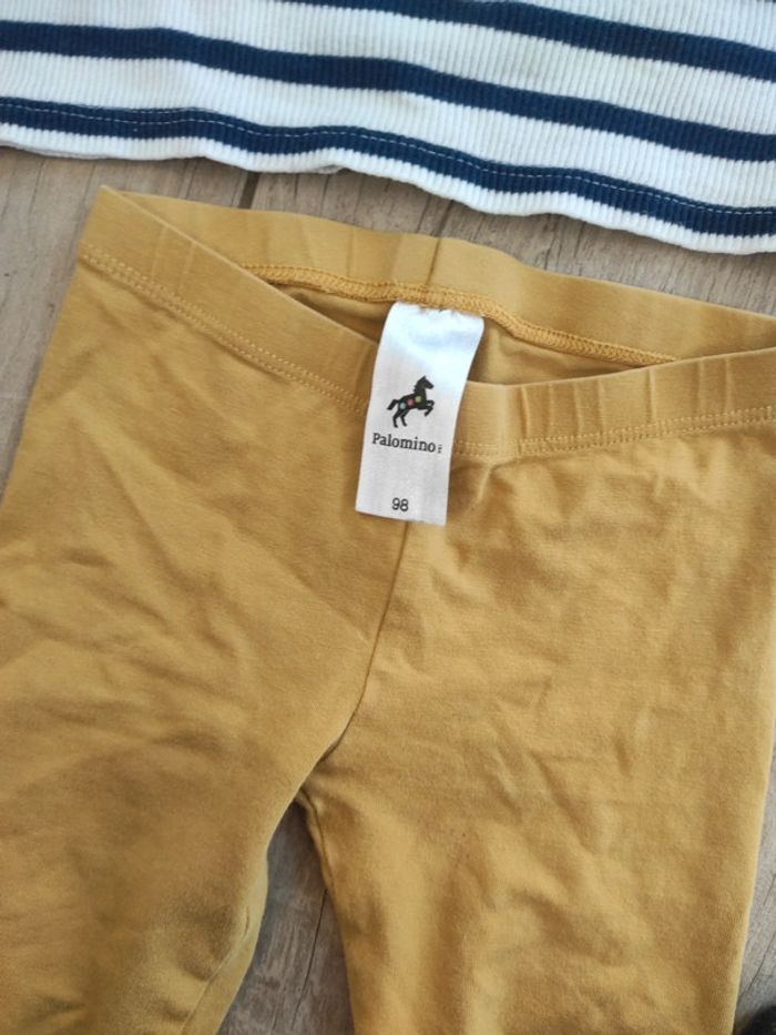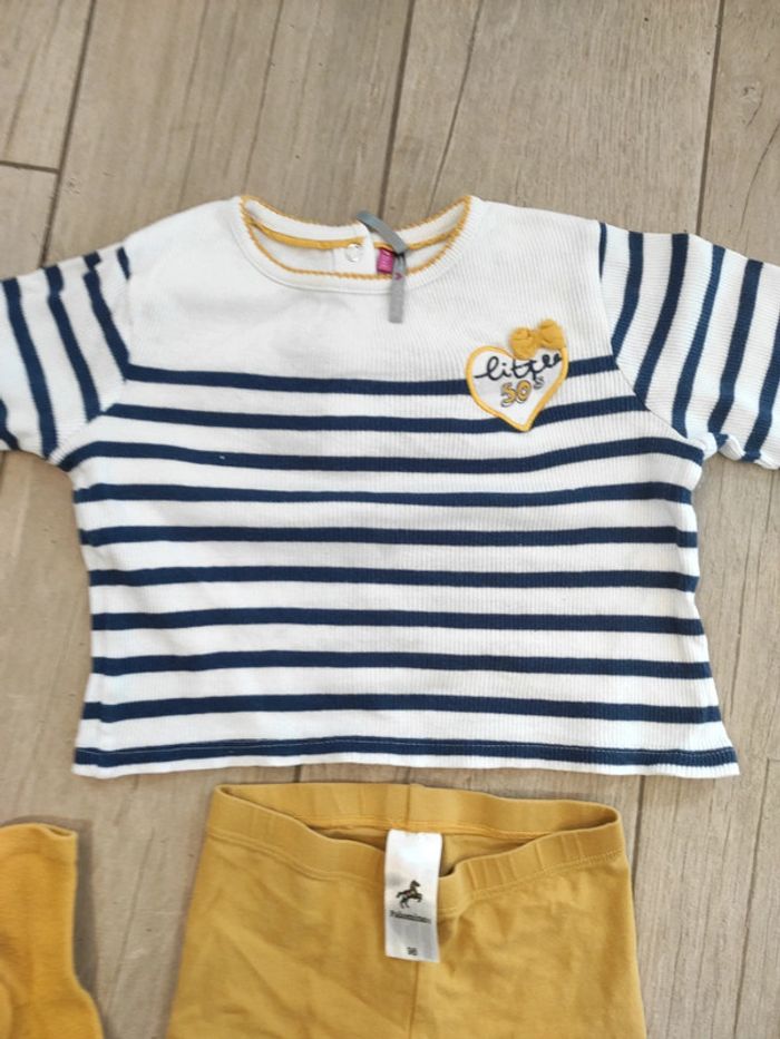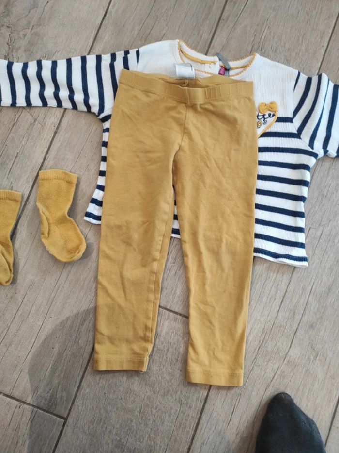 Ensemble fille en 18/24 mois composé d'un legging jaune, d'un pull rayée jaune et bleu Orchestra, une paire de chaussettes jaunes