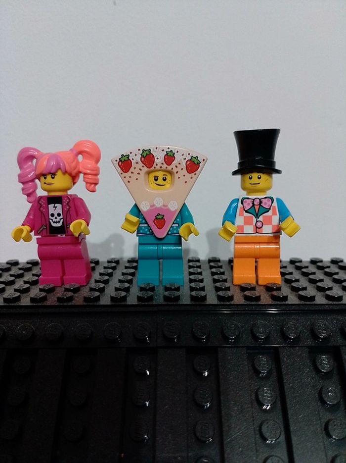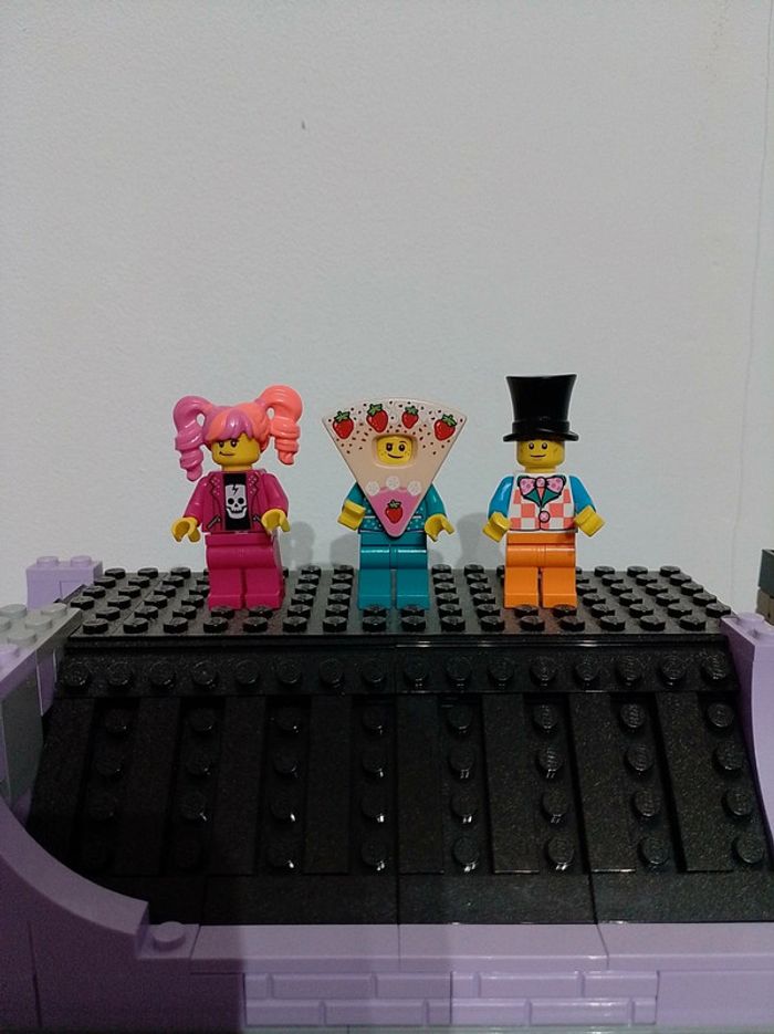 3 mini figurine que nous avons acheté en Lego store dans le mur des personnages a personnalisé.