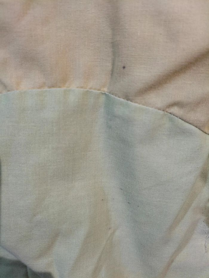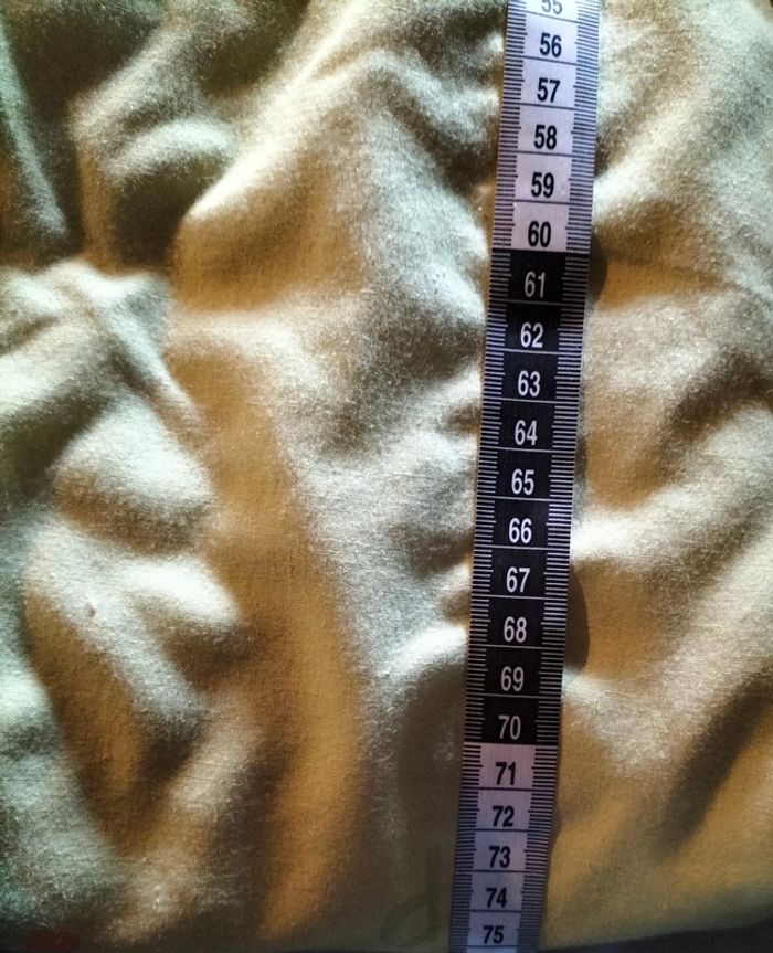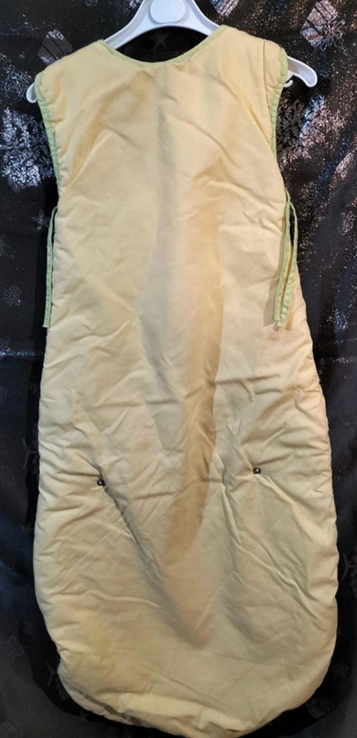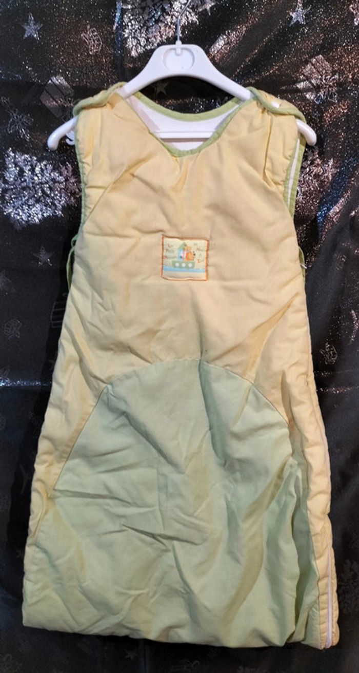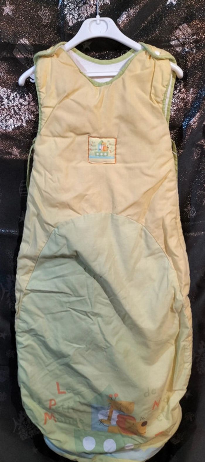 Nid d'ange bébé réglable de 75cm à 98 cm,ce qui doit correspondre à un 12/18 mois. Il y a quelques petites tâches pas trop visibles (points noirs)