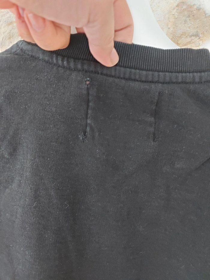 Porté mais reste en excellente état Juste un tout petit trou à l'arrière mais très peu visible