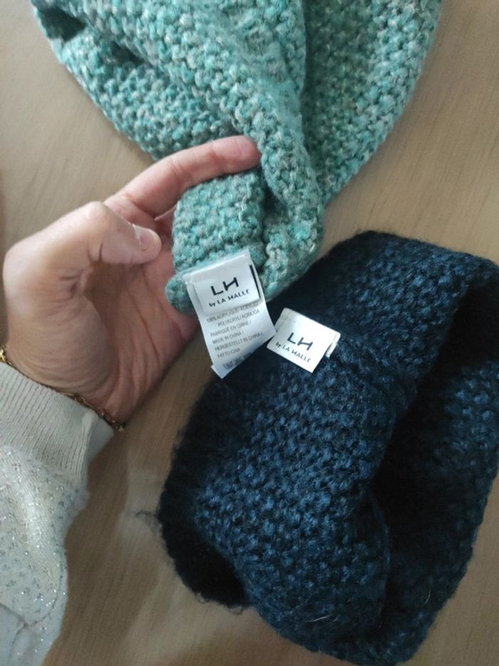 Lot de 2 bonnets femme La halle Vert et bleu marine