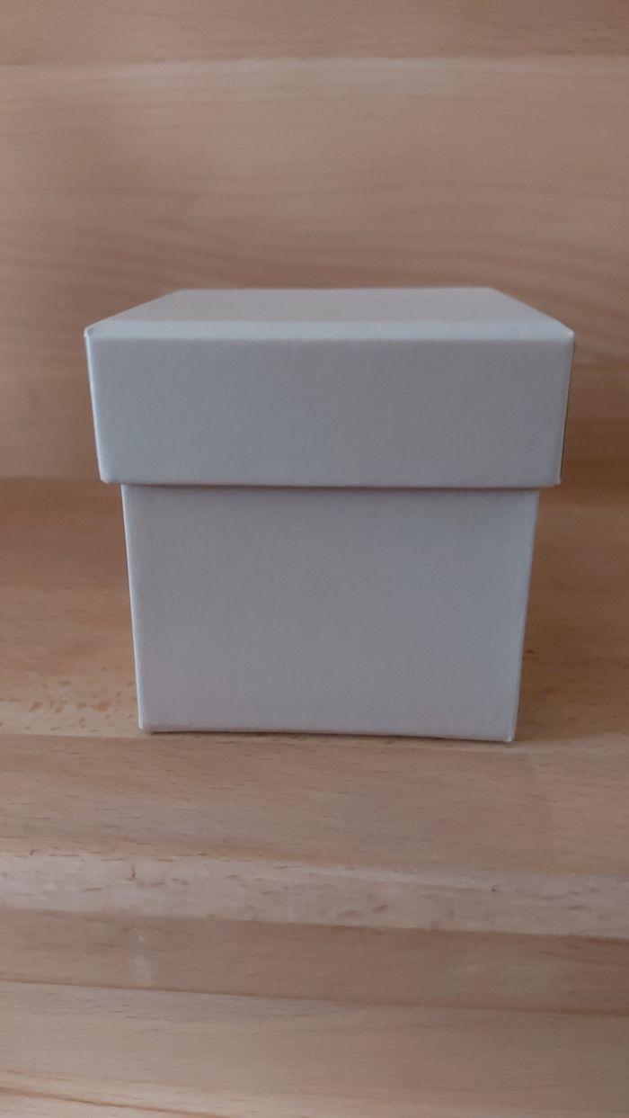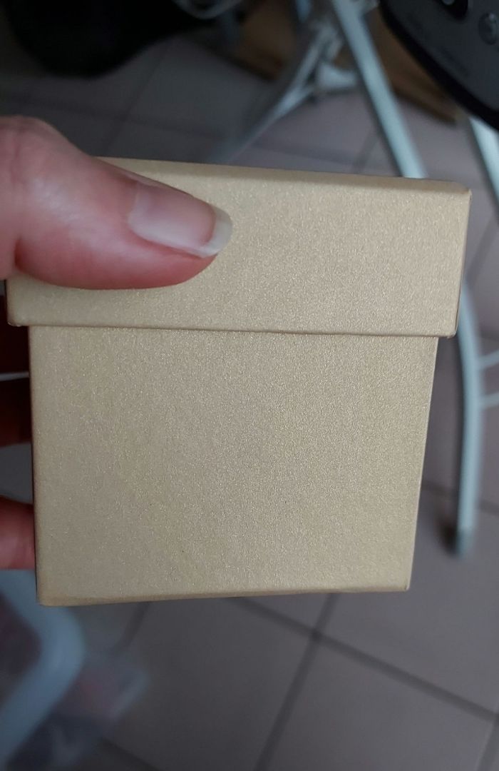 Boite de rangement en carton recouverte, dorée, neuve. Ht 8 x 7,5 x 7,5 cm
