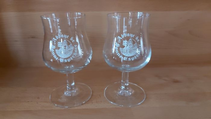 2 verres "Abbaye de Bonne Espérance " Ht 16 x diamètre 7 cm