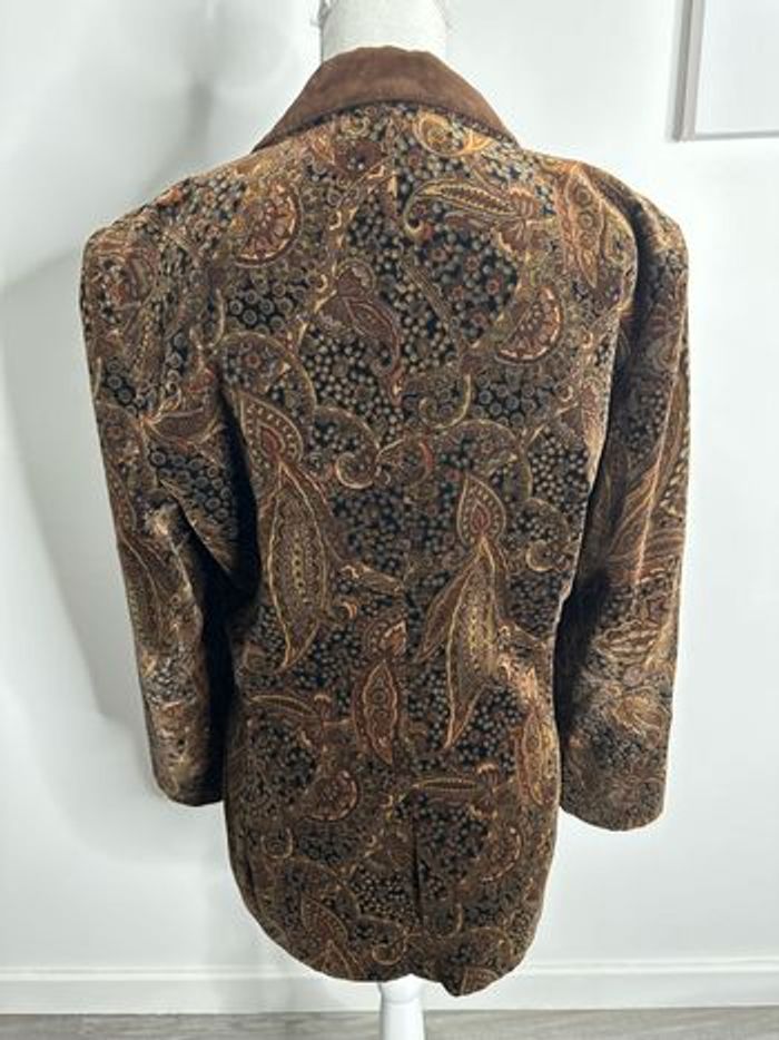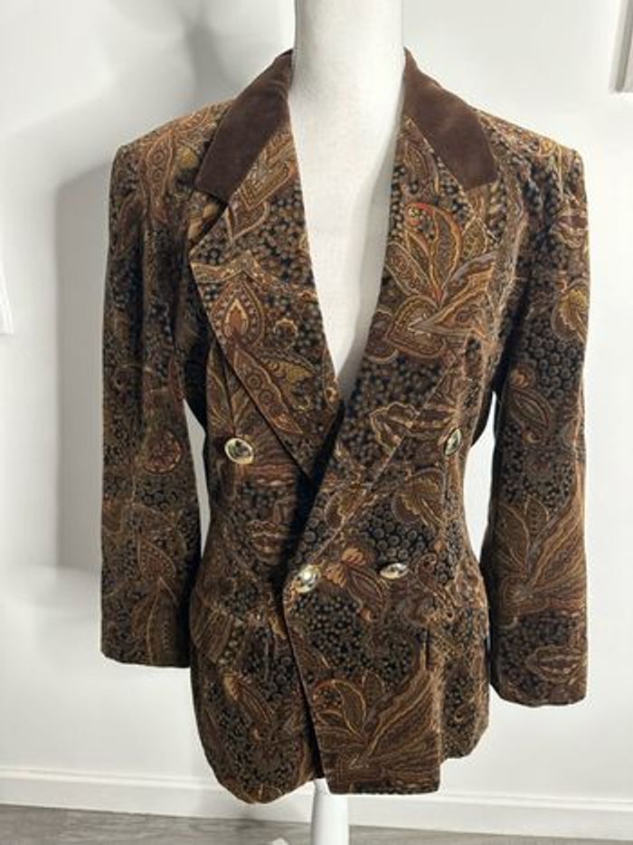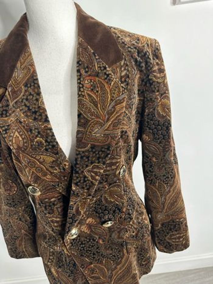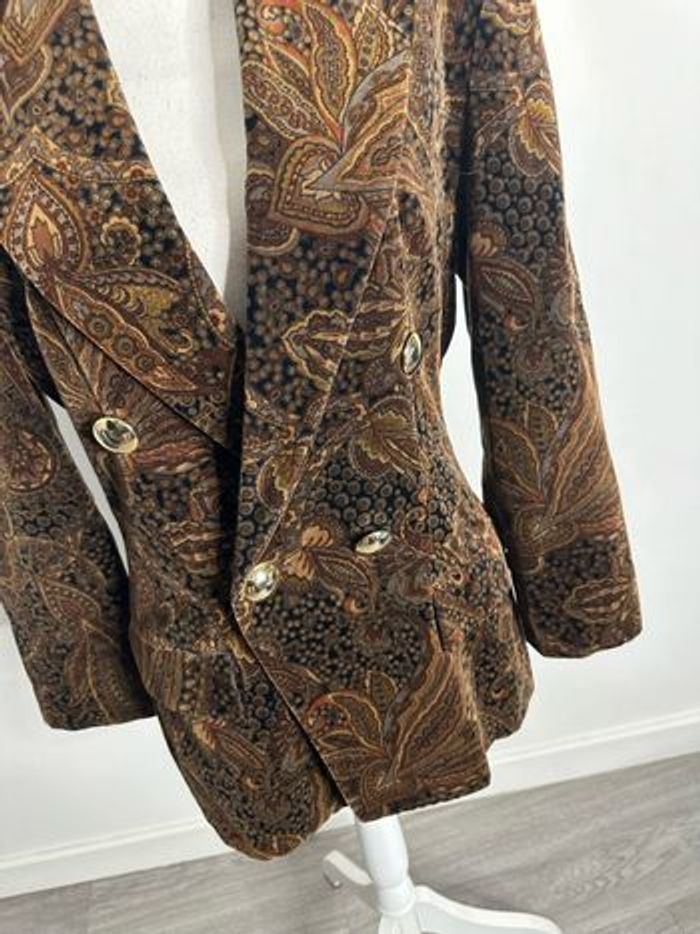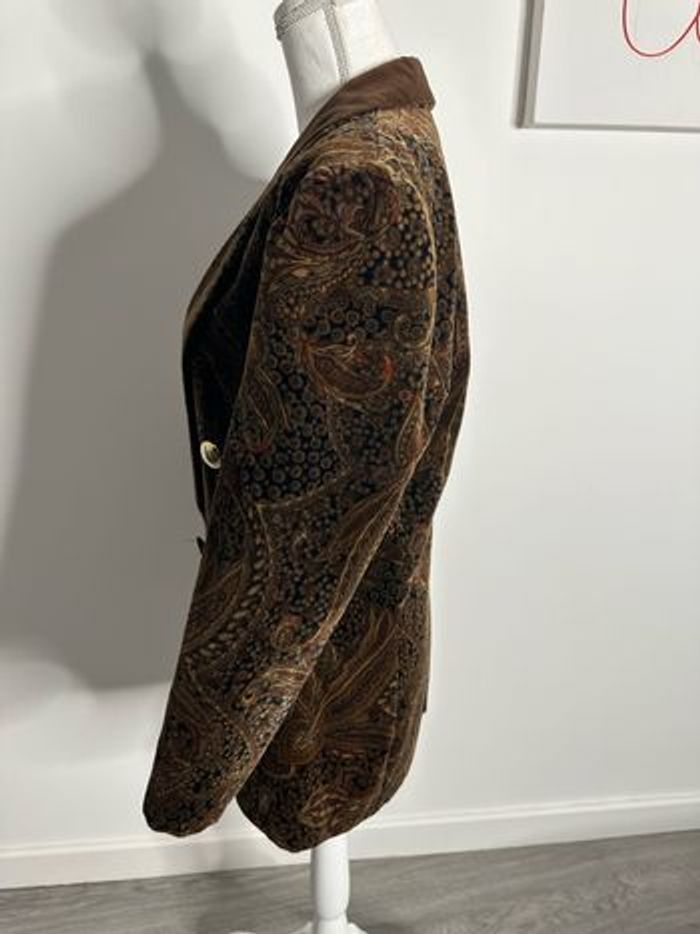Blazer en velours marron imprimés paisley Vintage T38 M