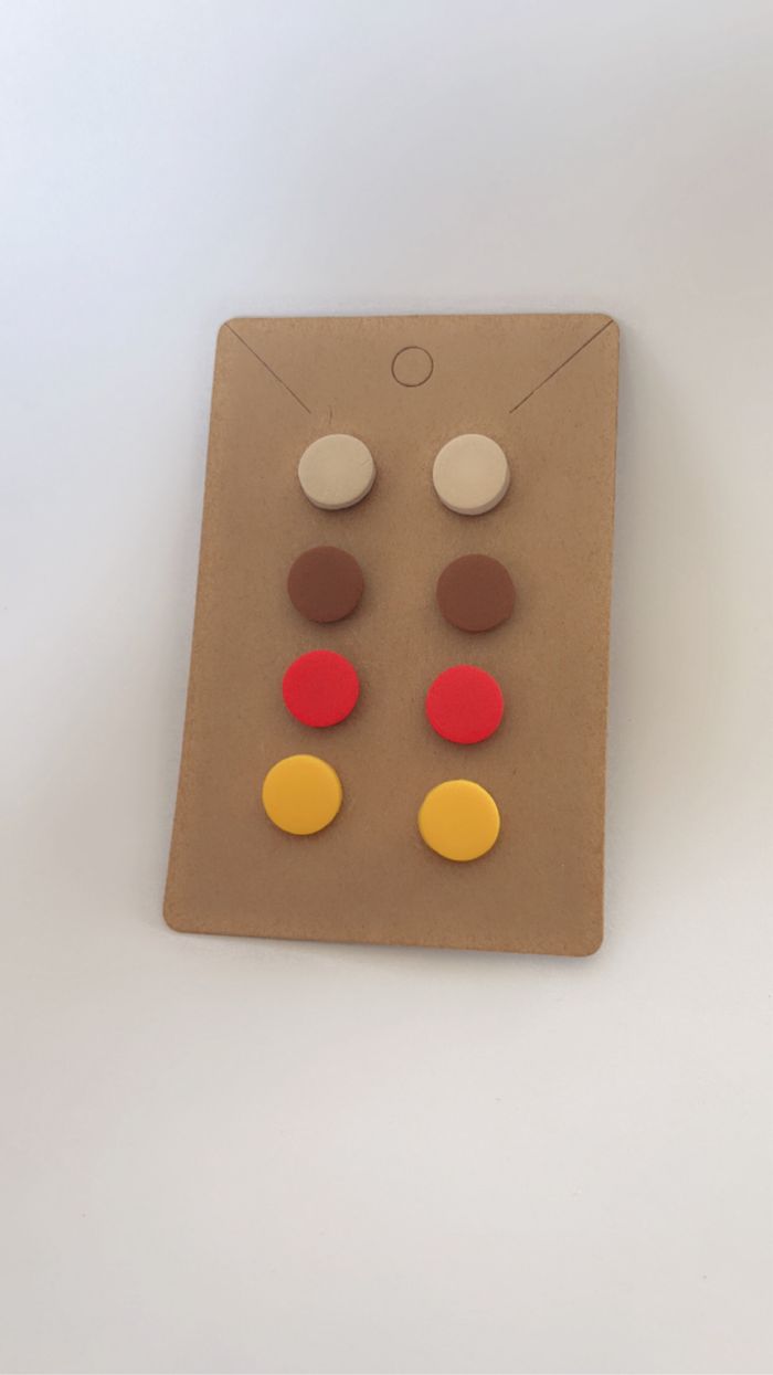✨ puce d’oreilles 🎨 rouge marron jaune beige 🏷️ acier inoxydable argenté, pâte polymère / fimo Possible de passer par Beebs / kiabi / le bon coin ou vin-ted. La poste en lettre suivie avec paiement PayPal #cindythomaasaccessoires #cindythomaasbijoux