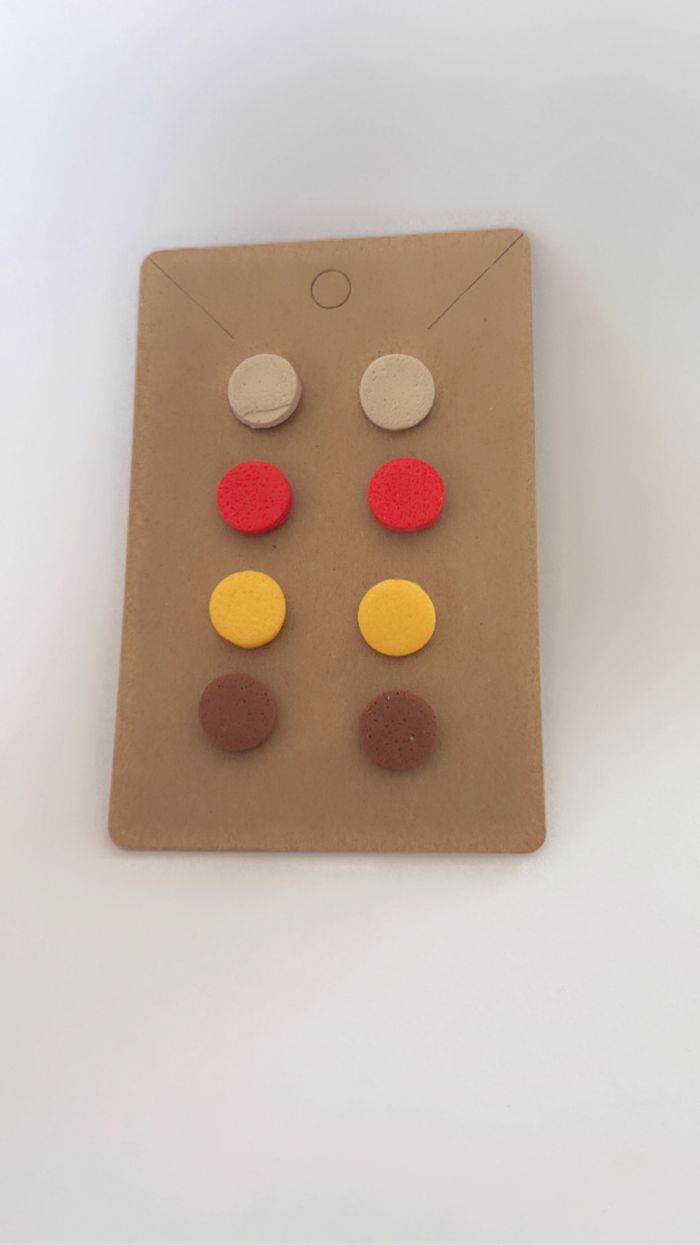 ✨ puce d’oreilles effet sable 🎨 rouge marron jaune beige 🏷️ acier inoxydable argenté, pâte polymère / fimo Possible de passer par Beebs / kiabi / le bon coin ou vin-ted. La poste en lettre suivie avec paiement PayPal #cindythomaasaccessoires #cindythomaasbijoux