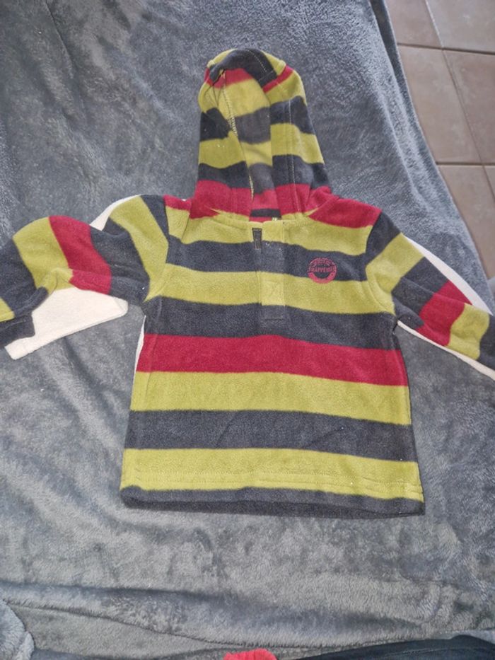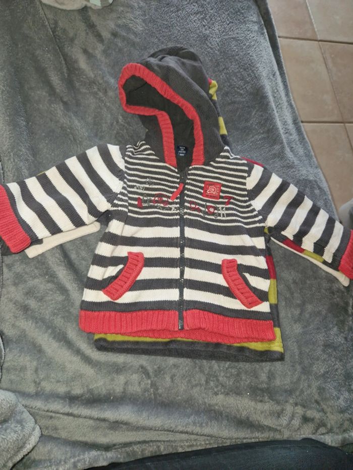 12 mois. Terre de marin rayé super chaud hyper joli! Orchestra et decathlon.