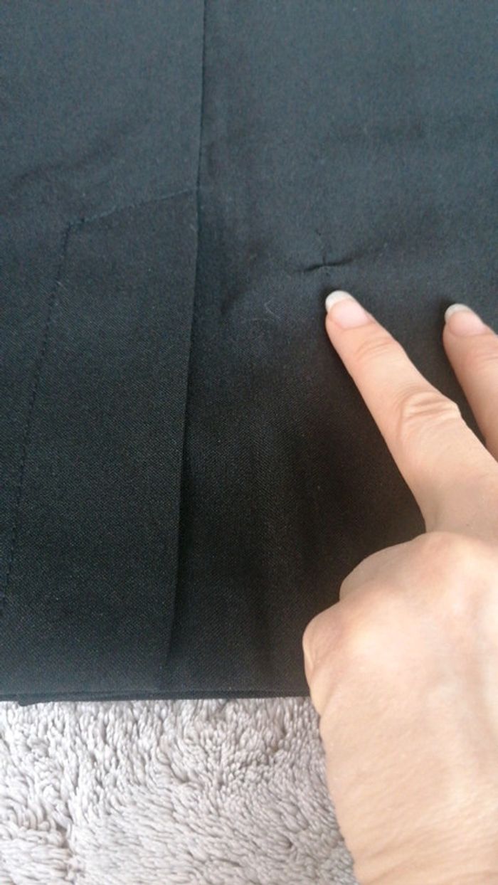 Jupe crayon noir. 10% polyester Hauteur 61 cms Hauteur de la fente à l arrière 14 cms 😢Ili y a un petit accro recousu à l arrière près de la fente. (cf dernière photo) #jupestelpha #taille38telpha #1eurotelpha