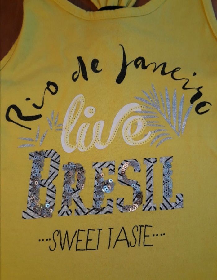 Tee-shirt sympa en très bon état. Les bretelles sont resserrées à l'arrière pour un effet ''sportif'' 47% coton et 53% viscose #hautstelpha #6anstelpha #enfantstelpha #1eurotelpha