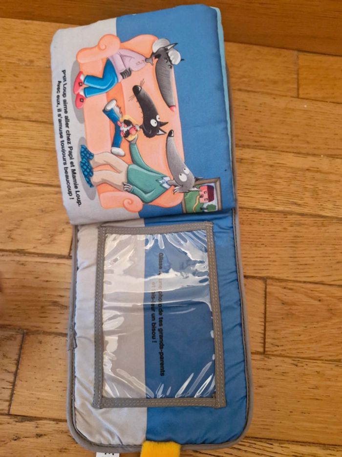 Livre tissus permettant de glisser des photos Thème P'tit loup le célèbre personnage des éditions Auzou Très bon état