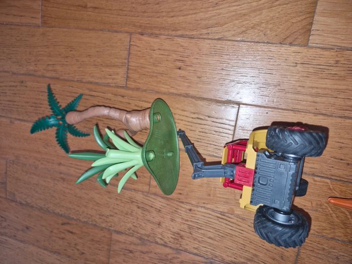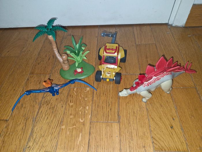 Lot playmobil avec deux dinosaures Pterodactyle Stégosaure Un véhicule incomplet Arbuste État correct #ValandrePlaymobil