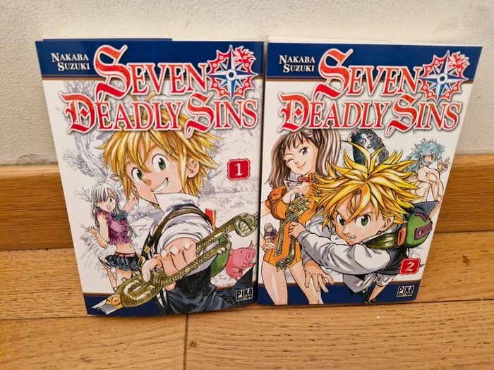 Lot de 2 manga Pika Edition Savent Deadly Sins Tome 1 et 2 Tome 1 traces dans la couverture à la fin et dans la sur couverture Tome 2 trace dans la Sur couverture au niveau de la tranche