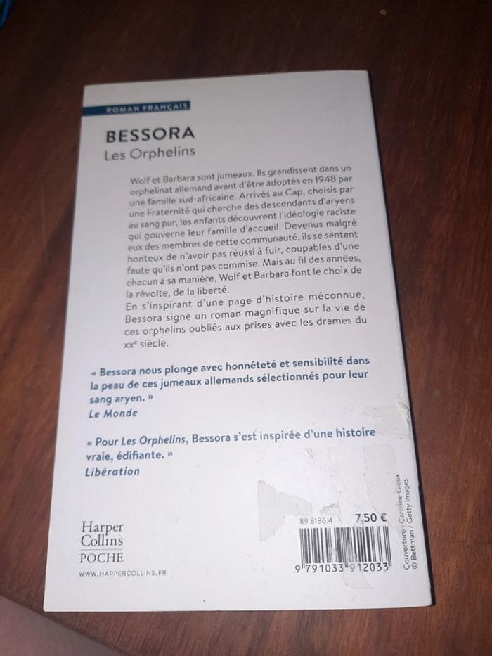 Roman format poche Bessora Les Orphelins Harper collins poche Presence trace autocollante au dos Couverture et première pages pliées cd photo #ValandreLivreAdulte