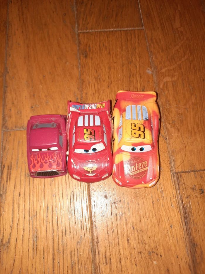 Lot de 3 voitures en plastique cars En plastique Une mini Un flash mac queen petit dont autocollant sont défaut Un flash mac queen bicolore car il s agit probablement d une change color #ValandreDisney