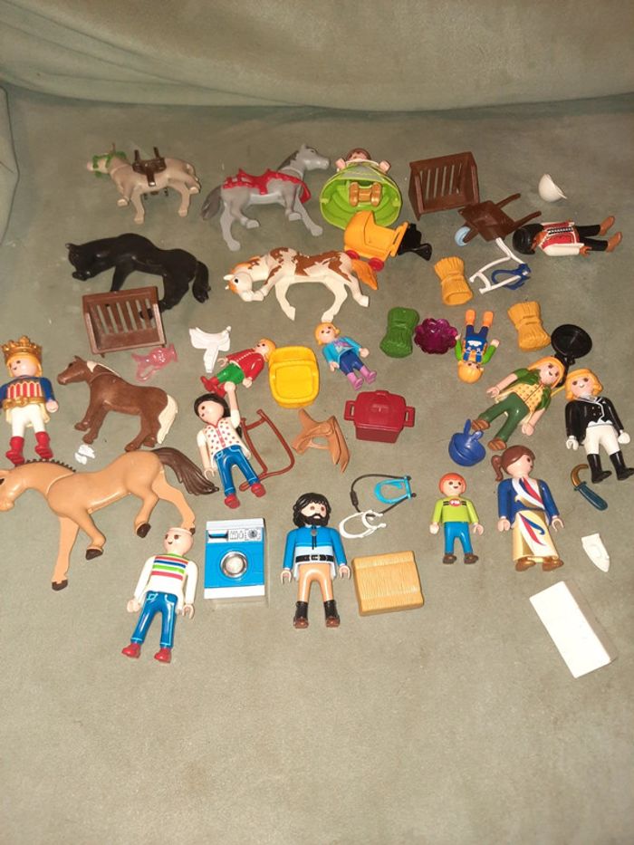 Lot de vrac playmobil Dont plusieurs personnages ( un des personnage n à pas de cheveux et des chevaux Princesse, machine à laver Tout ce qu il y a la sur la photo #ValandrePlaymobil
