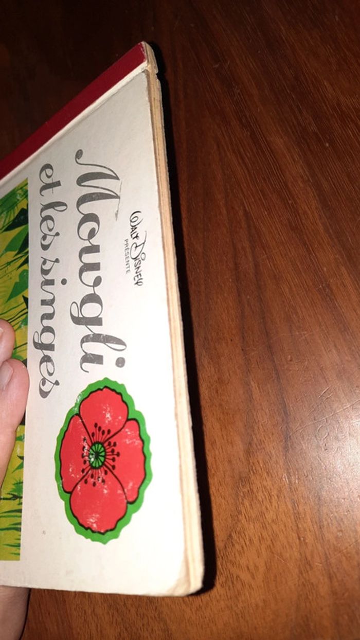 Livre des années 70 Walt disney présente mowgli est les singes gentil coquelicot une histoire une chanson des jeux éditions hachette Imprimé en France dépôt légal 3eme Tout début c'est écrit 1977 Livre abime presence de taches couverture abimée à pleins d endroit Sent le renfermé #ValandreLivreEnfant #ValandreDisney #DisneyVintage