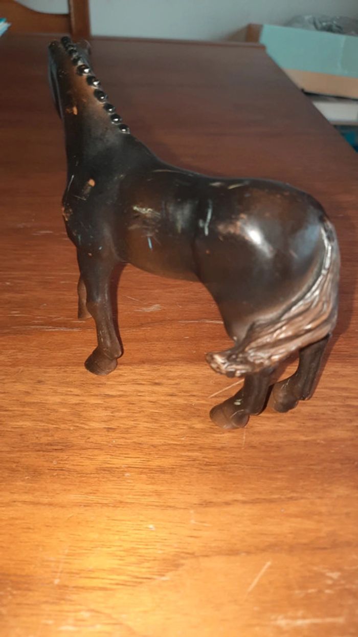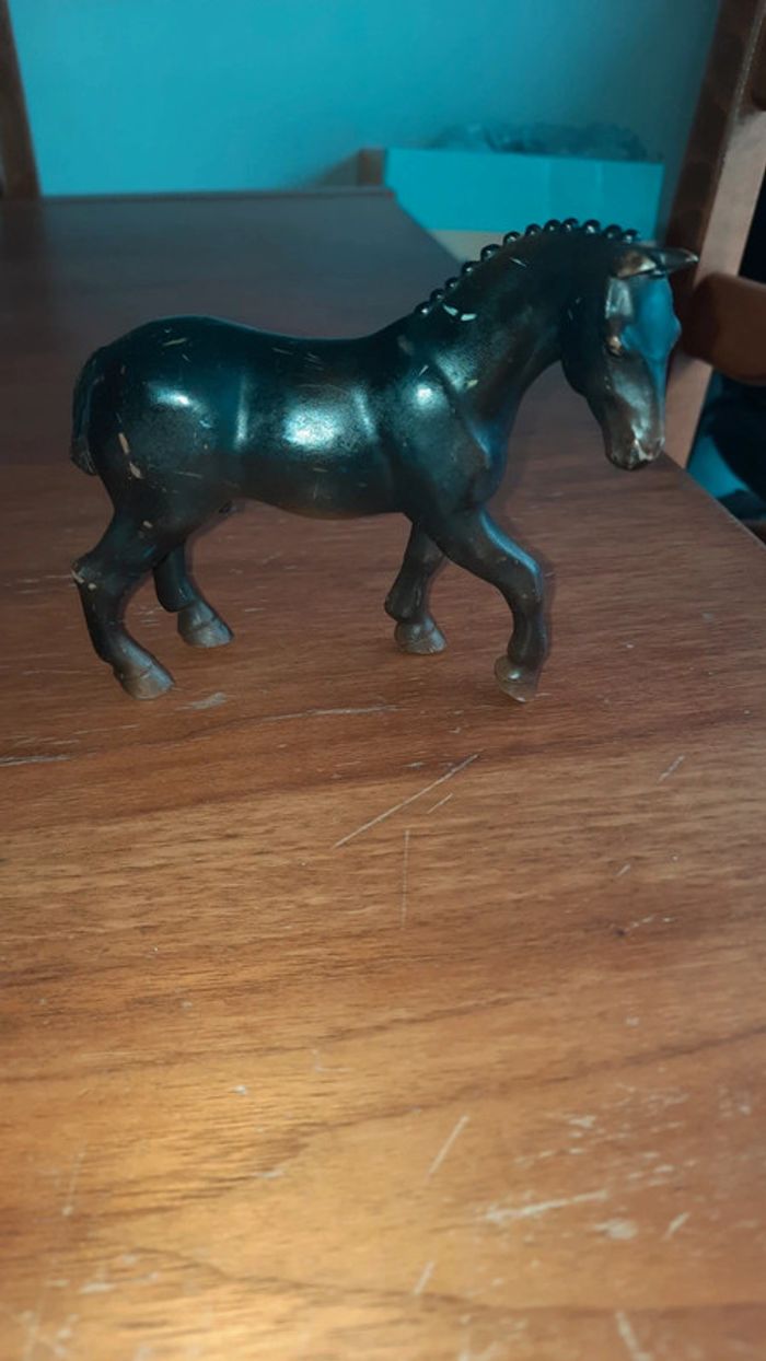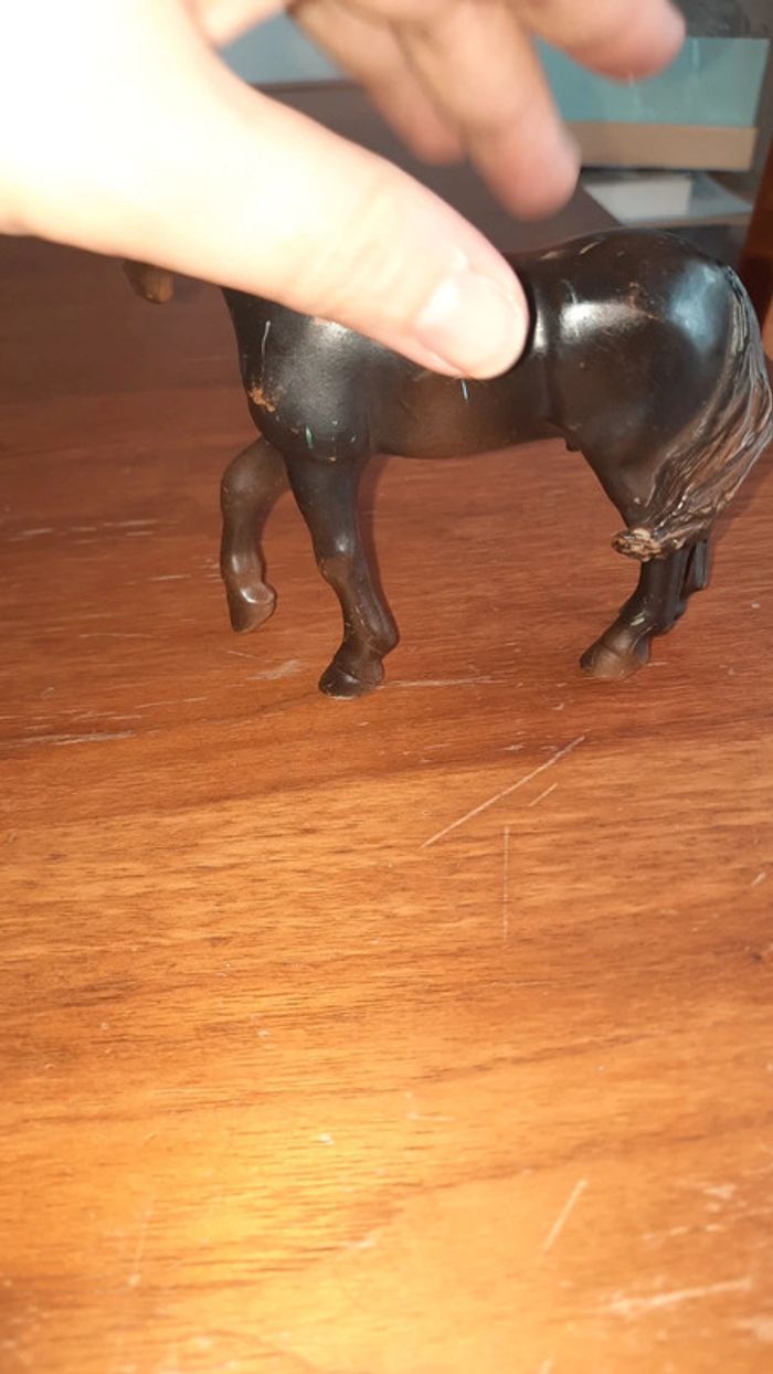Lot de 2 chevaux Noir avec des traces marque papo Et le bicolore est de la marque Scheich #ValandreJouet