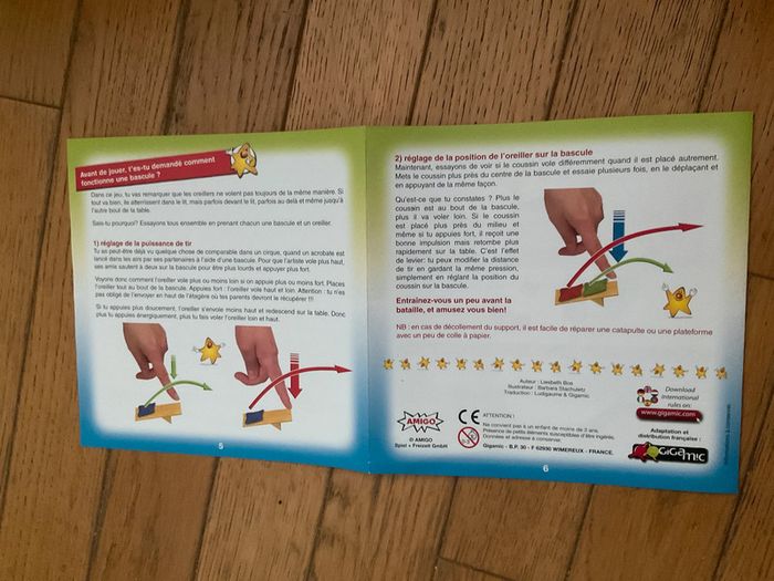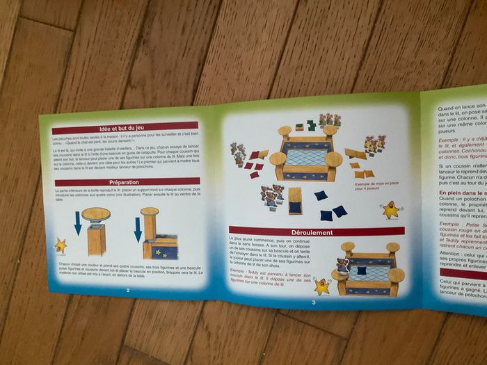 Jeu pour 2 à 4 joueurs À partir de 4 ans Marque Gigamic Polochons bataille d’oreillers Complet mais boîte abîmée : un coin du couvercle est déchirée. Coups à un autre coin et partie înferieure abîmée sur un des côtes Cf photos #ValandreJeu