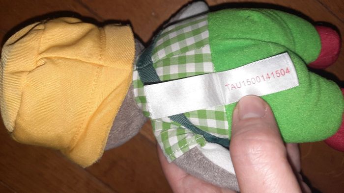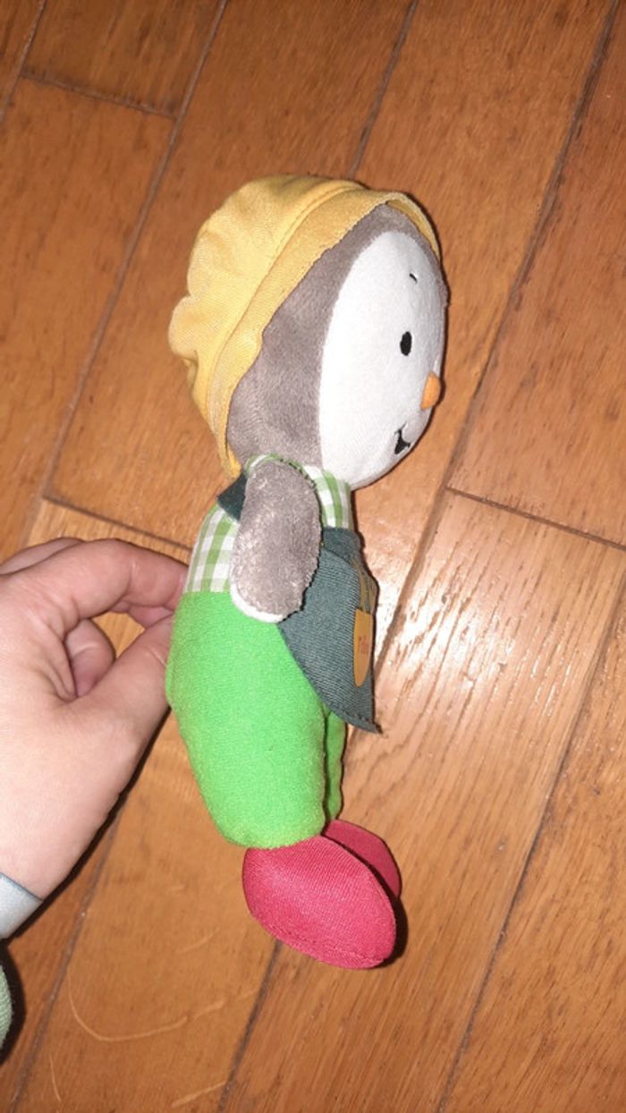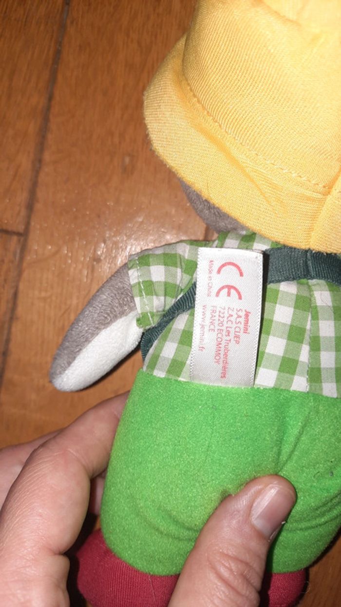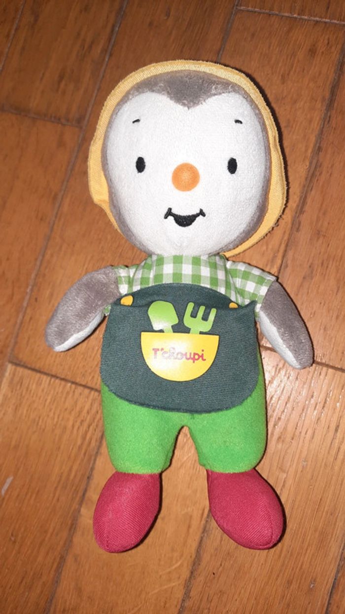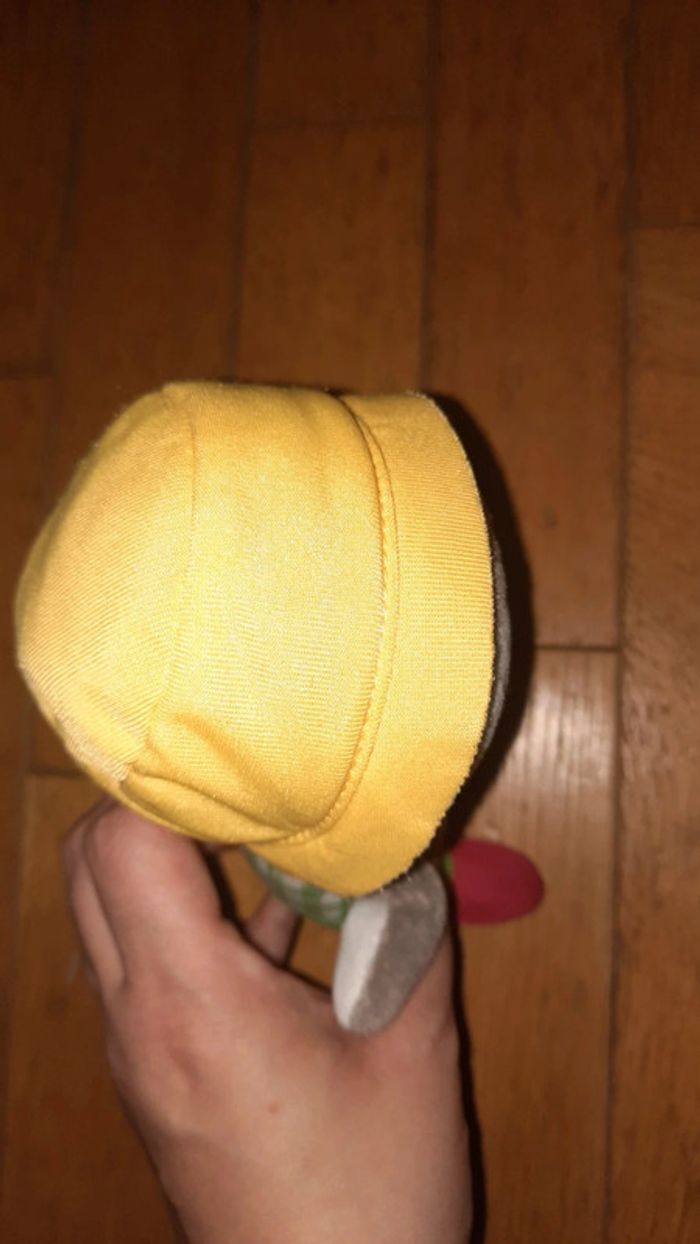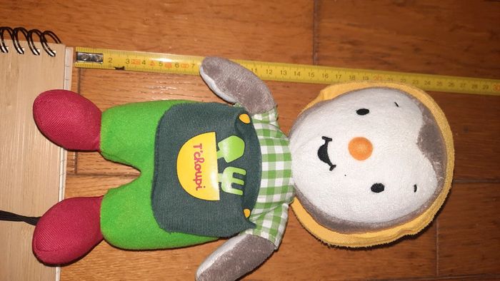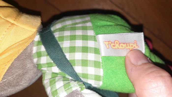 Peluche représentant T'Choupi Habillé comme un jardinier Occasion bon état l étiquette tissé commence à être effacé au niveau des informations d entretien Dans mon dressing une autre peluche T'Choupi ainsi que 2 sacs aux couleurs de Tchoupi