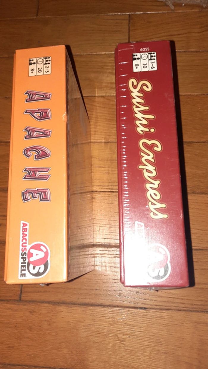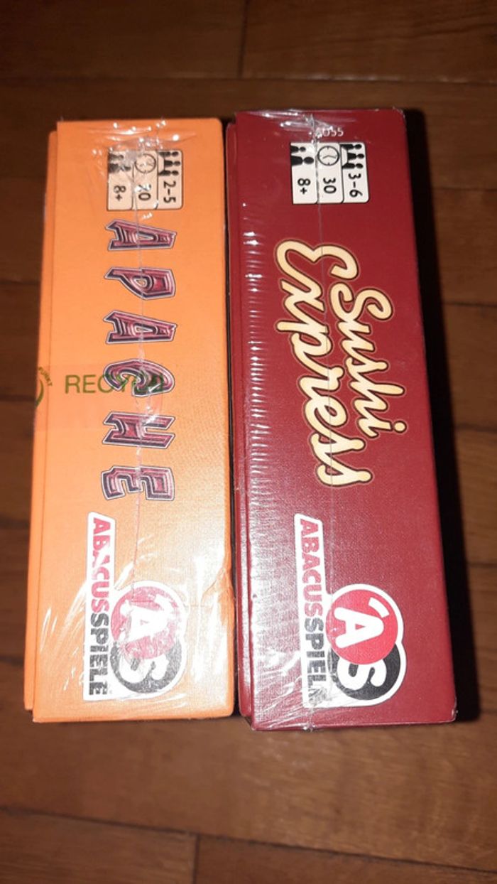 Lot de 2 jeux de la marque AbascusSpiele Ils sont tous deux sous blister Sushi express léger accro sur le devant cf photo Apache presence de 2 accros sur le devant #ValandreJeu