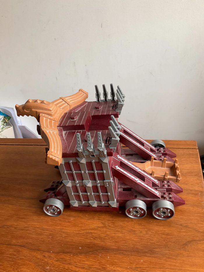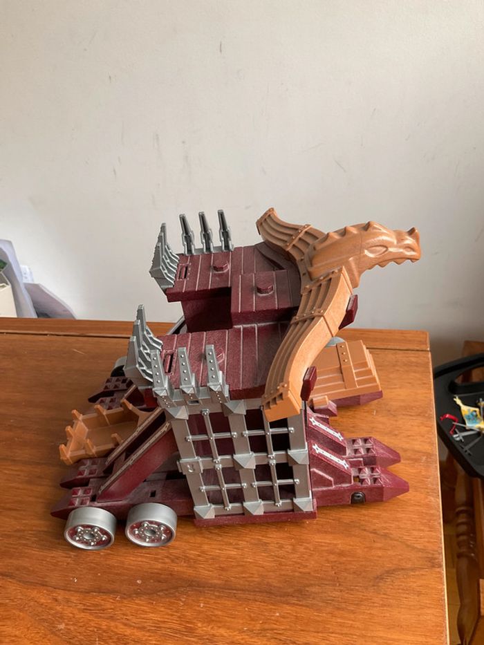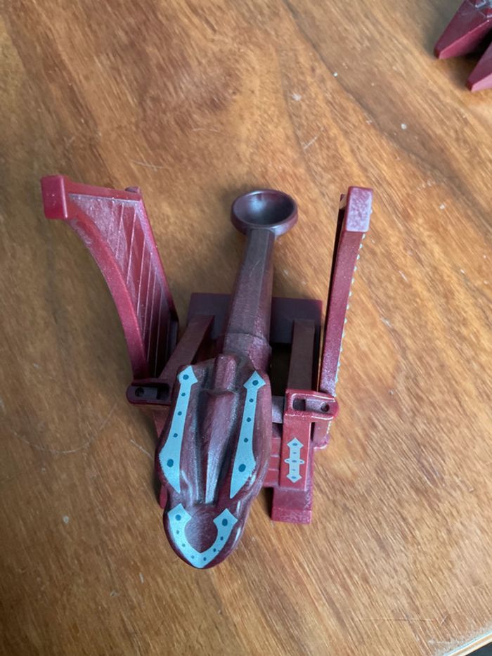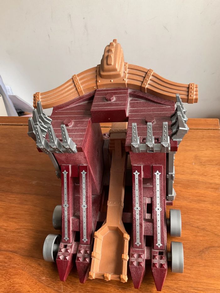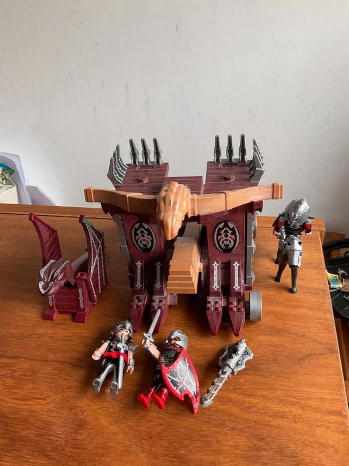 Lot playmobil thème chevalier Composé de 3 personnages un cheval et une grande catapulte où il manque une roue ( il faut aussi le support qui permet de l’accrocher car la partie noire ou elle se met est cassée - cf photo) La grosse épée ne s allume plus #ValandrePlaymobil
