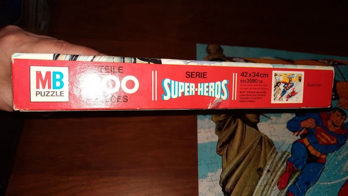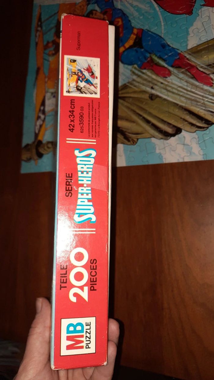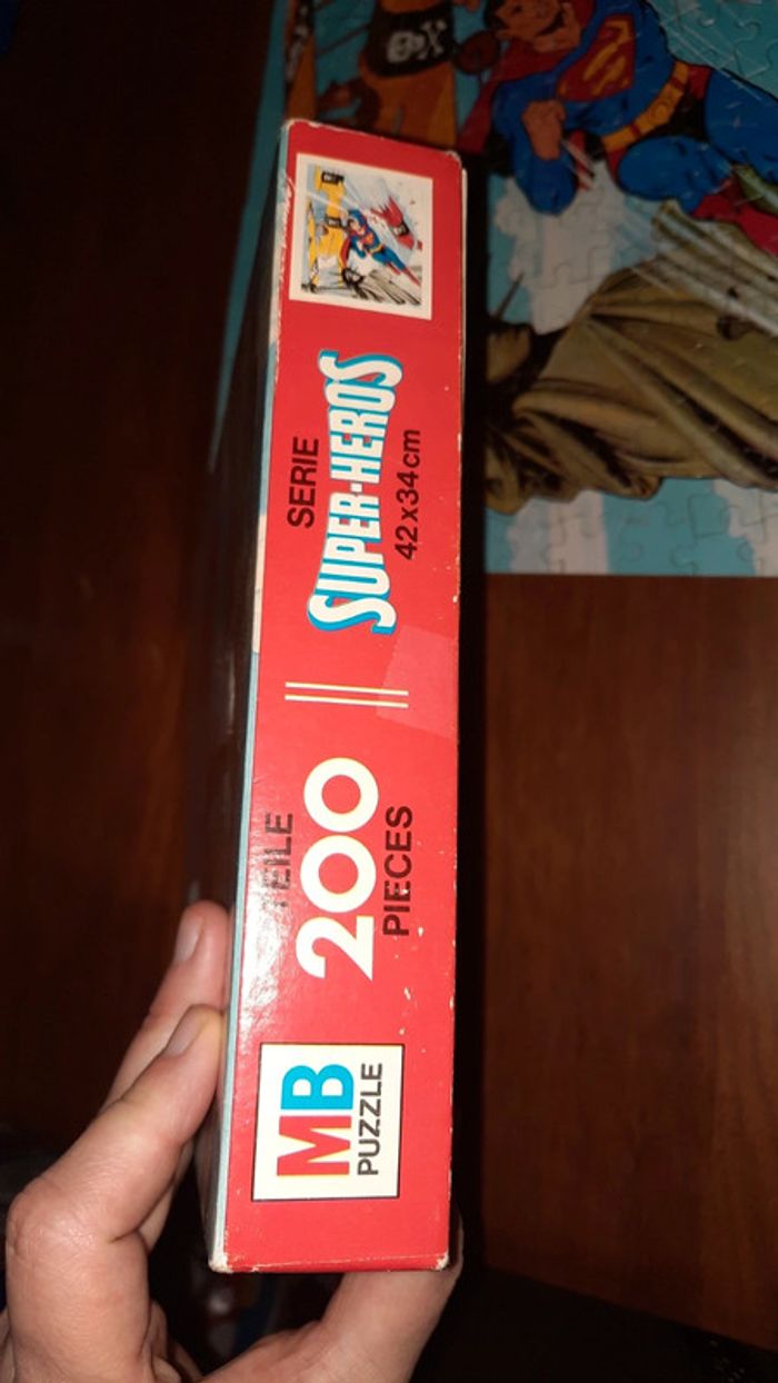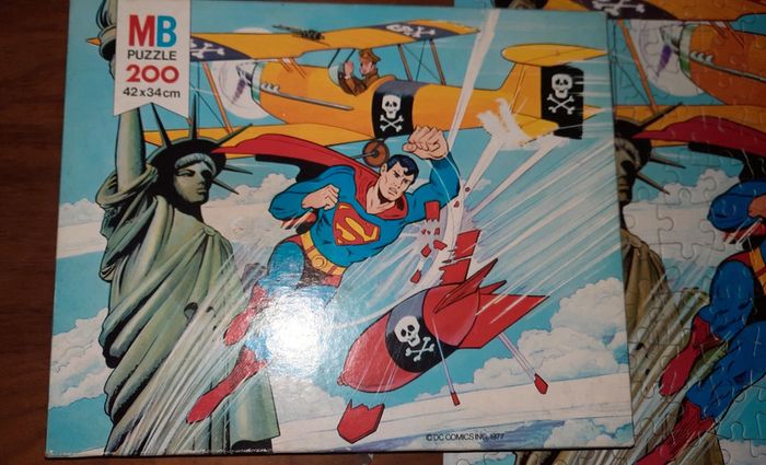 Puzzle vintage Thème superman de chez MB 200 pièces dimension cf photos de la boite DC Comics Inc 1977 Couvercle de la boite abimé Présence de stoch #ValandreJeu #ValandreJouet