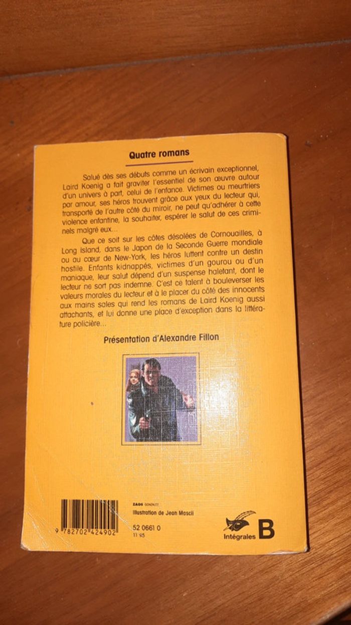 Libre contenant 4 romans de Laird Koening Attention les enfants regardent La petite fille au bout du chemin La porte en face Les îles du refuge #ValandreLivre #ValandreLivrePolicier Etat satisfaisant car présence de pliure sur la couverture en bas à gauche et sur les 50 premières pages Présence de noir sur la cote Cornée en haut à gauche Et pages légèrement ondulés au debut