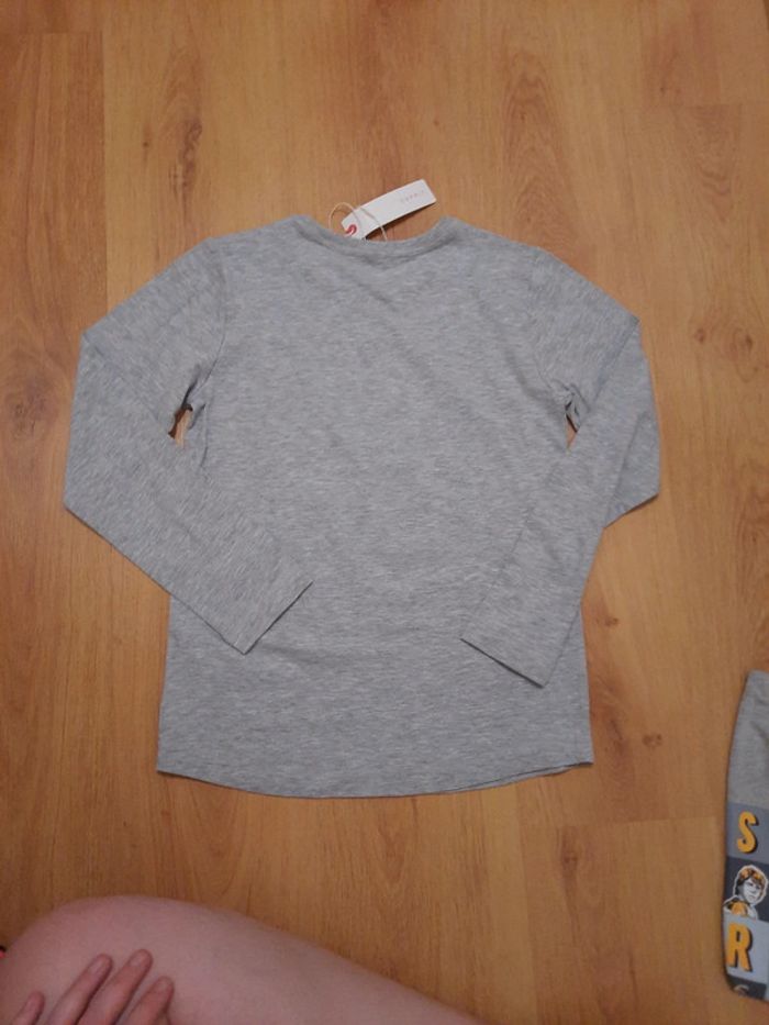 Tee shirt ml de couleurs gris chiné Avex dessin dans les tons bleus Marque esprit Taille 10/11 Ans Neuf encore étiqueté 🏷 #Valandre11Ans