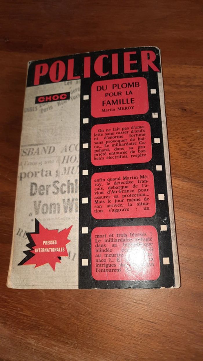 Format poche Presses internationales Inter police Du plomb pour la famille Martin Merroy ⚠️ info ci dessous sur l etat car date de 1963 Grosse pliure sur la couverture Une plus petite aubdos Tranche abimé Couverture qui se defait Presence écriture dans la première page Coins recourbé