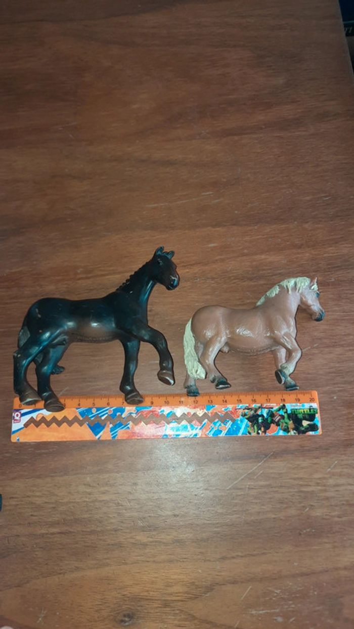 Lot de 2 chevaux Noir avec des traces marque papo Et le bicolore est de la marque Scheich #ValandreJouet
