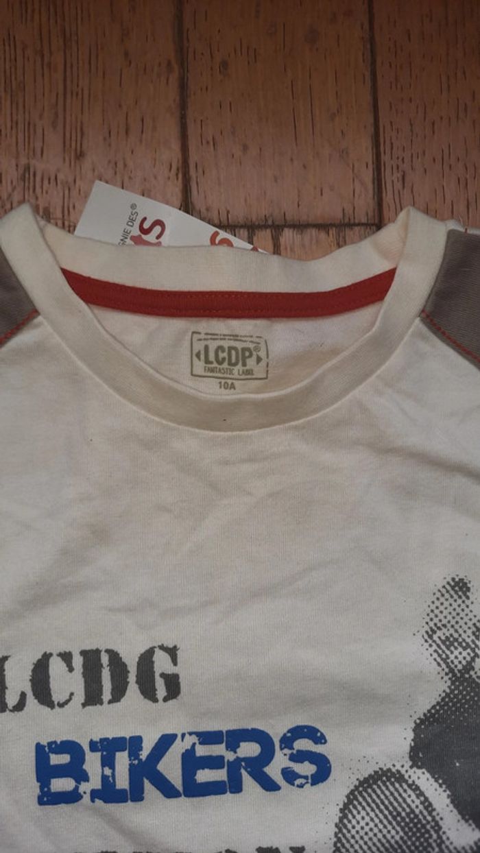 Tee shirt blanc crème LCDP la compagnie des petits Taile 10 ans Avec dessin theme moto Neuf encore étiqueté #Valandre10ans