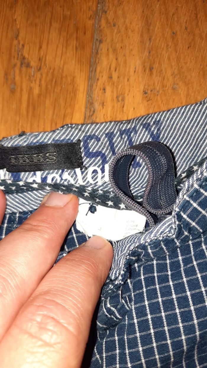 Sorte de chez ikks taille 4 ans taille élastique intérieur réglable de couleur bleu foncé avec carreaux en petite ligne blanche 2poches sur le côté se ferment avec bouton bon état