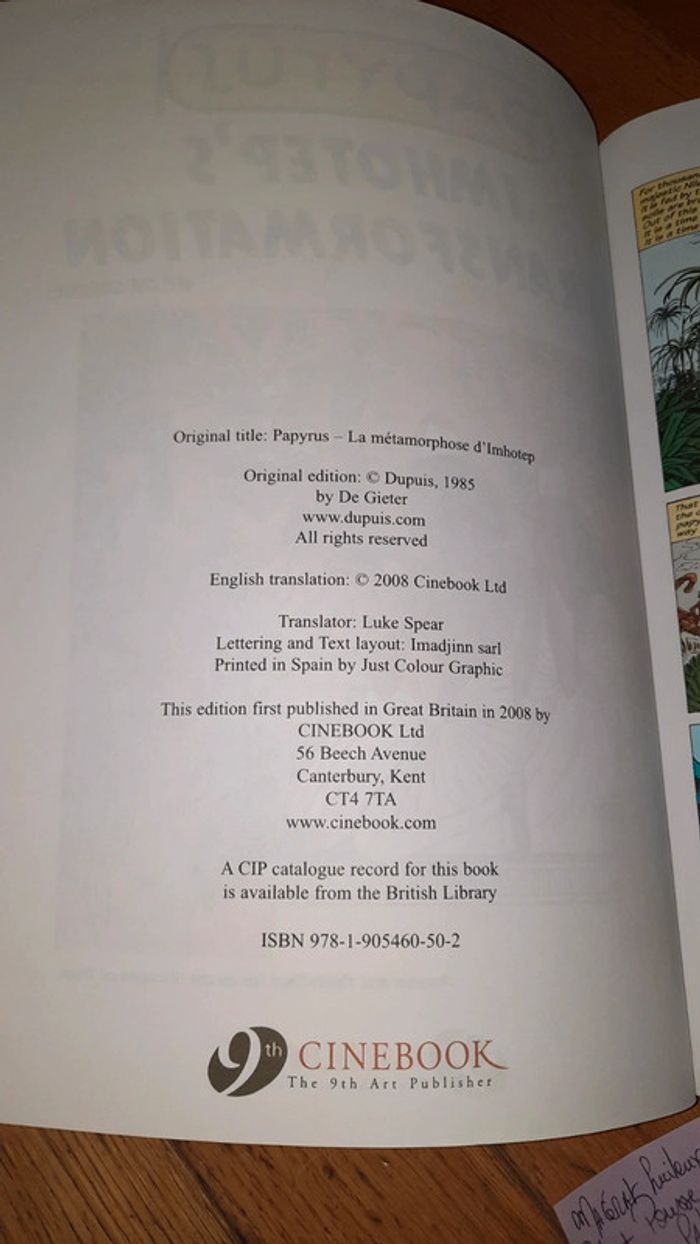 Bande dessinée Papyrus En anglais Imhotep's transformation By de Gieter Couverture souple presence pliure sur la couverture avant En bas à droite cf photo #Valandre_BD
