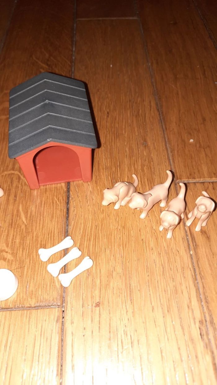 Lot playmobil Thème chien Comprenant 2 grands chiens avec 4 chiots 3 os Une niche Une gamelle Parfait état #ValandrePlaymobil