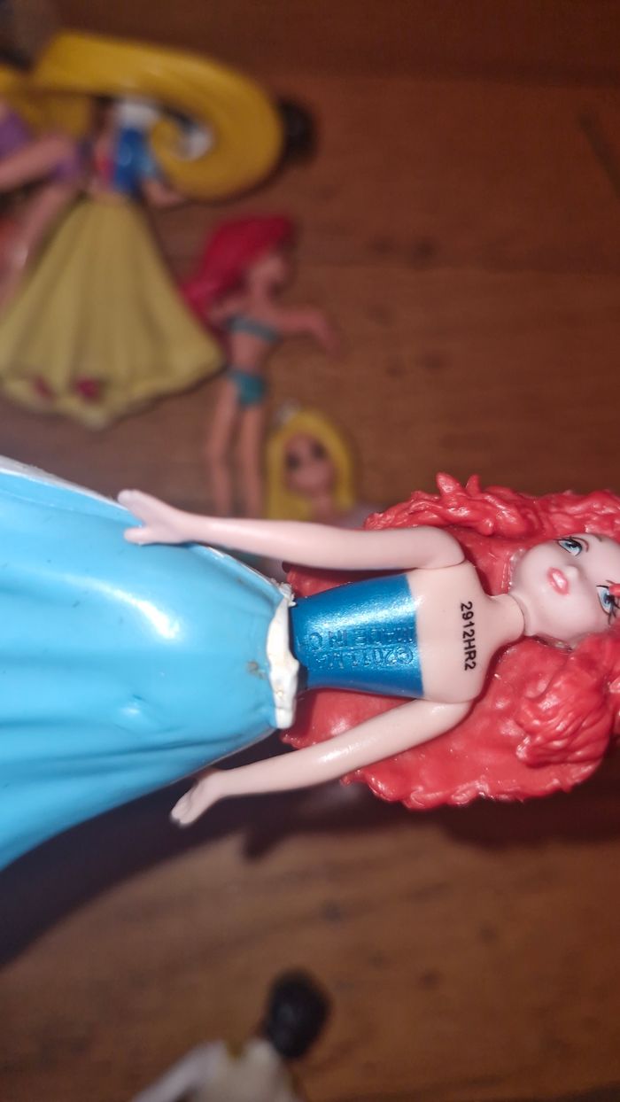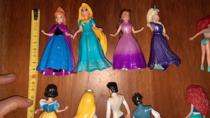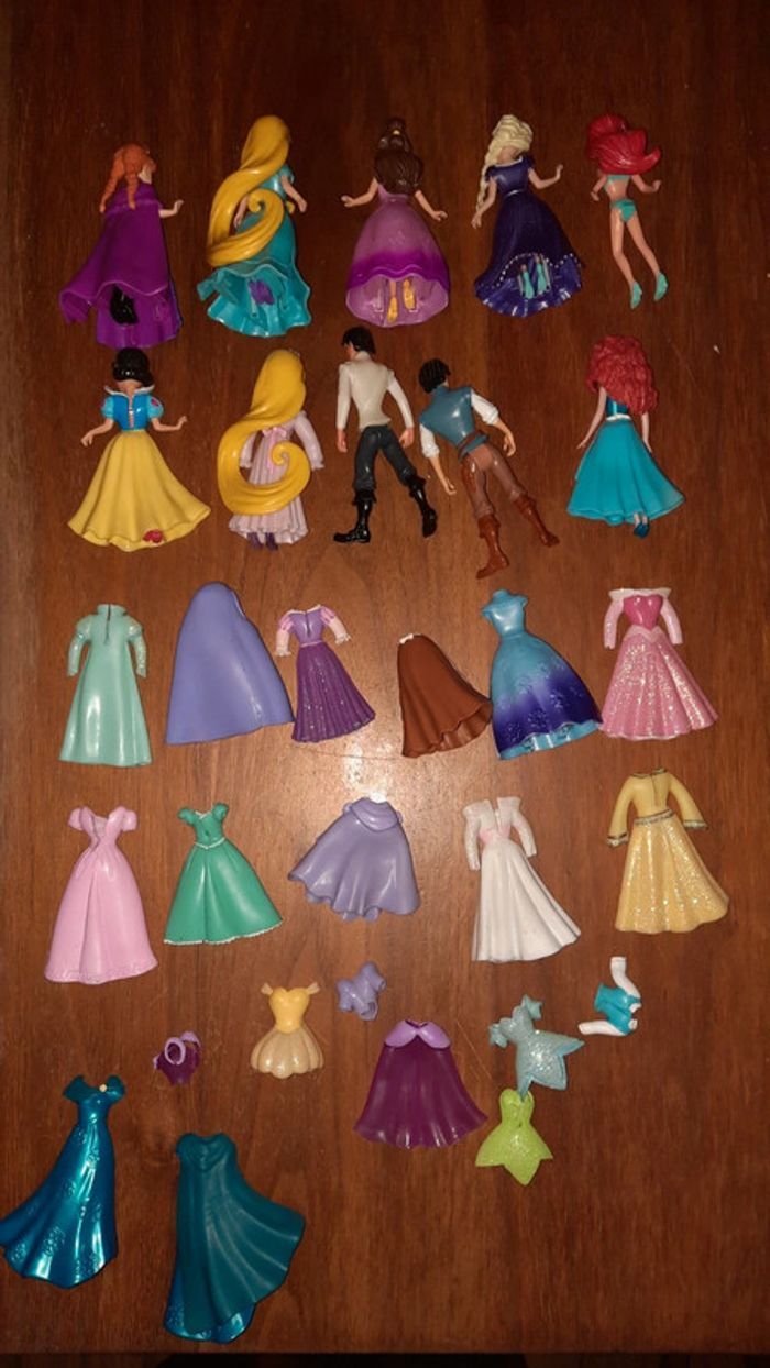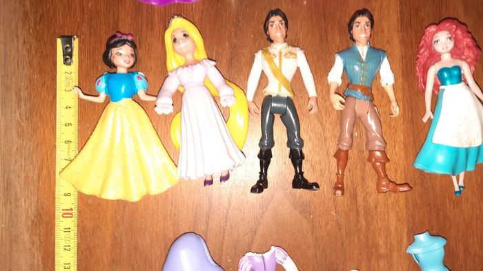 Lot de personnages disney dont Raiponce Rebelle Blanche neige Elsa Anna Belle Ariel Et des tenues de rechanges Certaines tenues sont en plastique rigide et d autre sont en plastique souple #ValandreJouet #ValandreDisney Sera envoyé dans une pochette en forme de cœur et à fermeture éclair